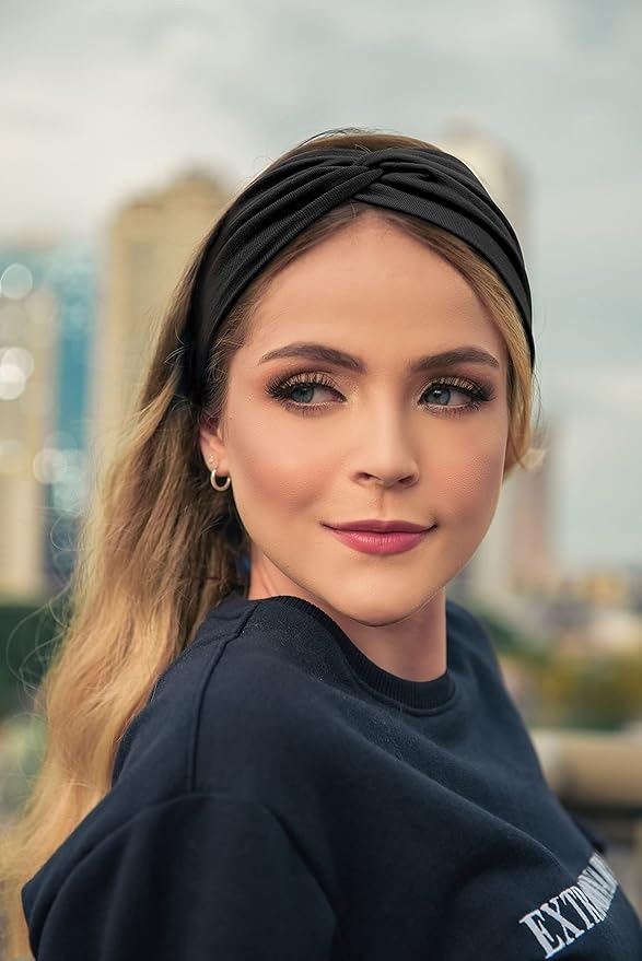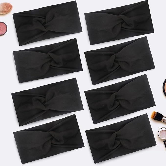 - Tobeffect Headbands for Women Non Slip Turban Headband Boho Wide Head Band Womens Hair Wraps Accessories for Teen Girls 8 Pack Solid Colors (Black)