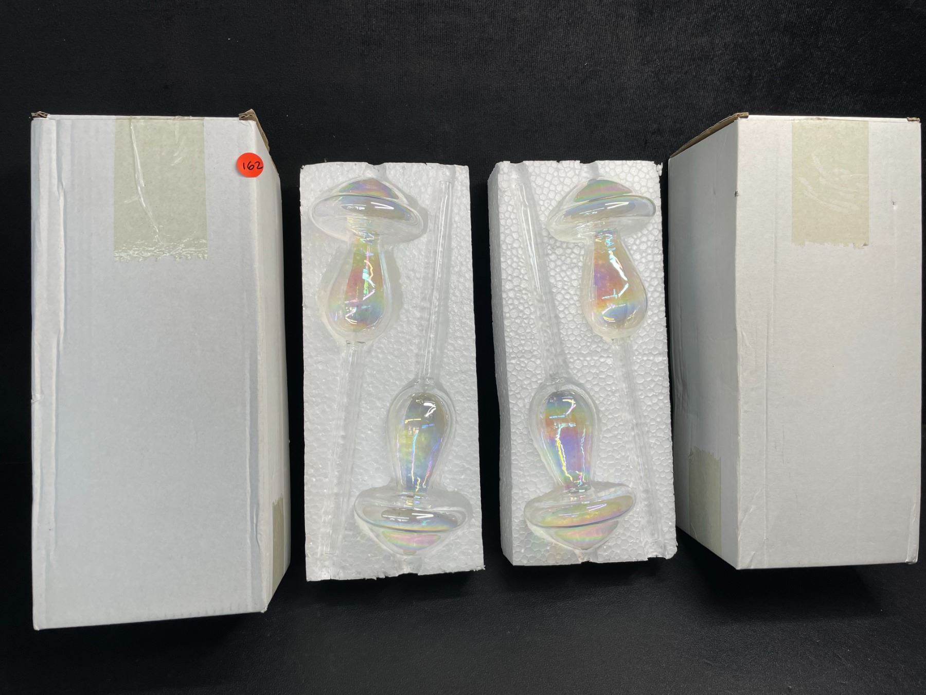 Lot 162 4PC Iridescent Mushroom Top Fill Plant Watering Bulbs, Self- Watering Glass Watering Globes - New