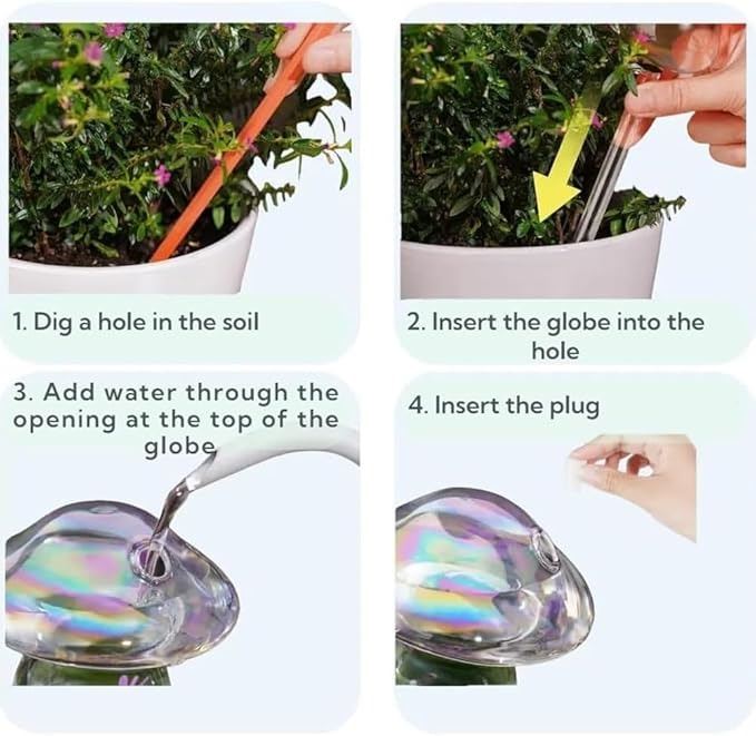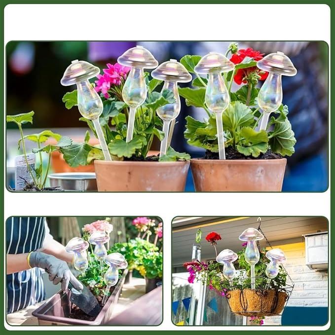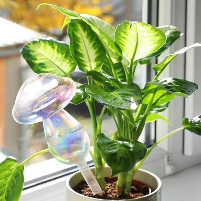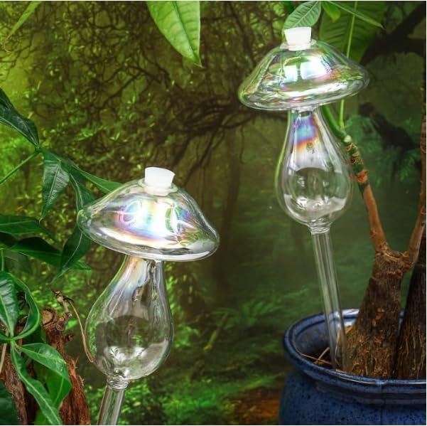 - Light Iridescent Mushroom Top Fill Plant Watering Bulbs Self Watering Spikes Planter Insert Devices Clear Glass Watering Globes for Indoor & Outdoor Plants