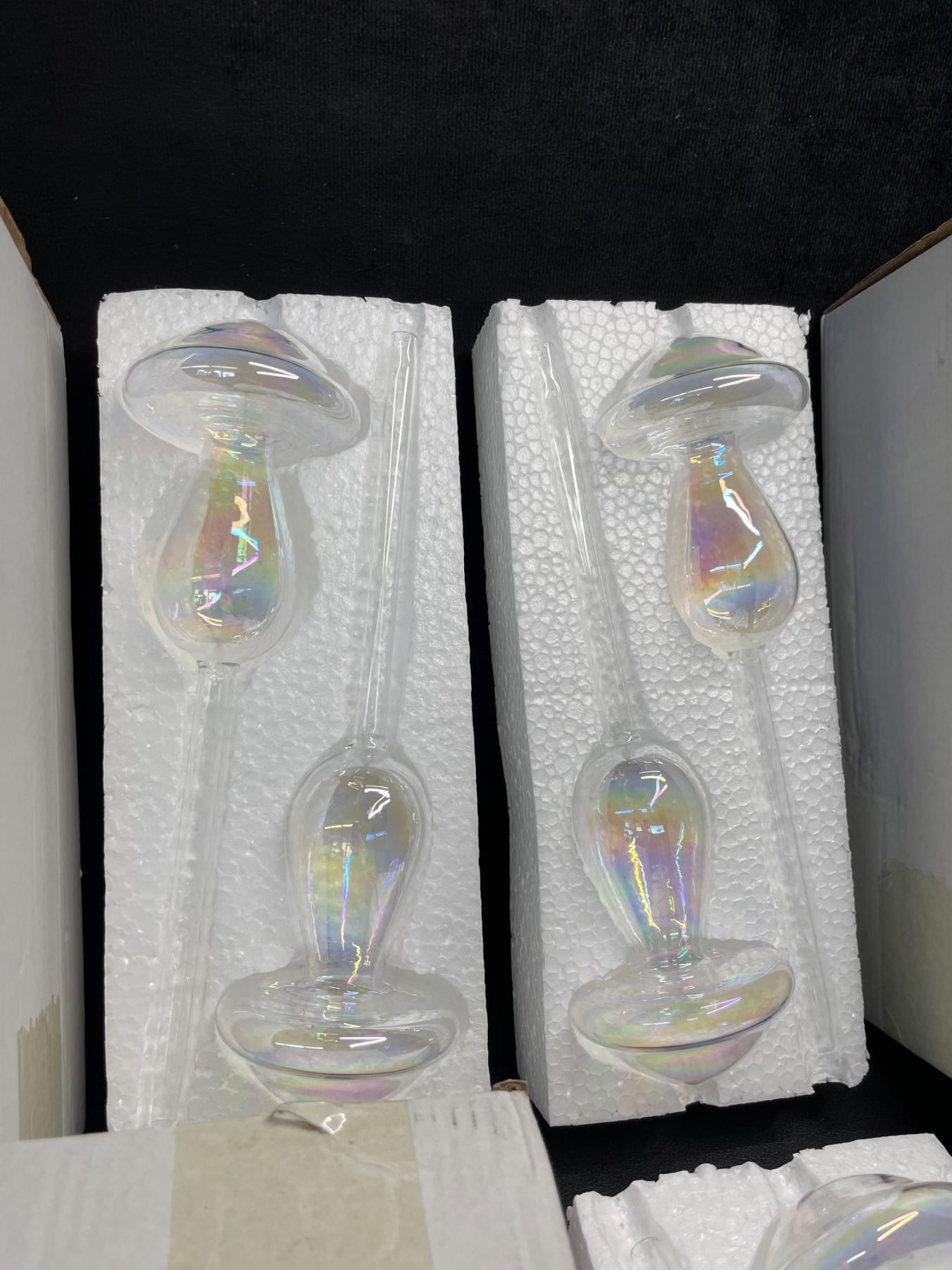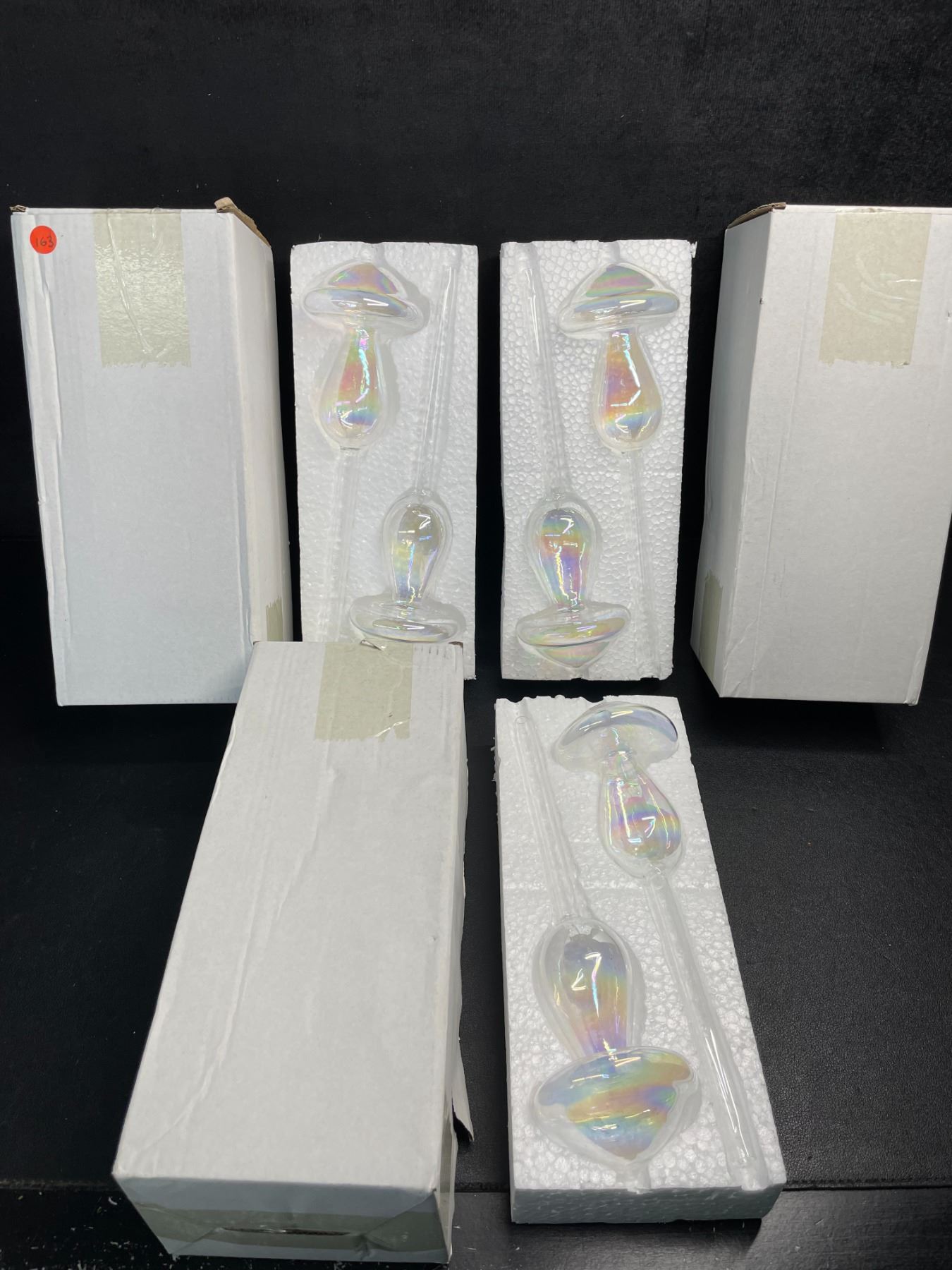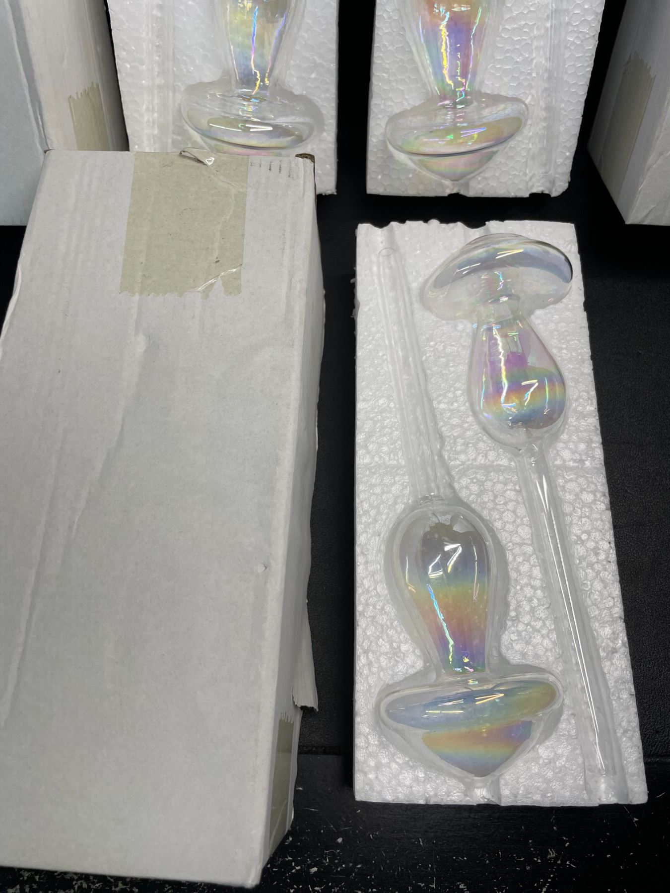 Lot 163 6PC Iridescent Mushroom Top Fill Plant Watering Bulbs, Self- Watering Glass Watering Globes - New