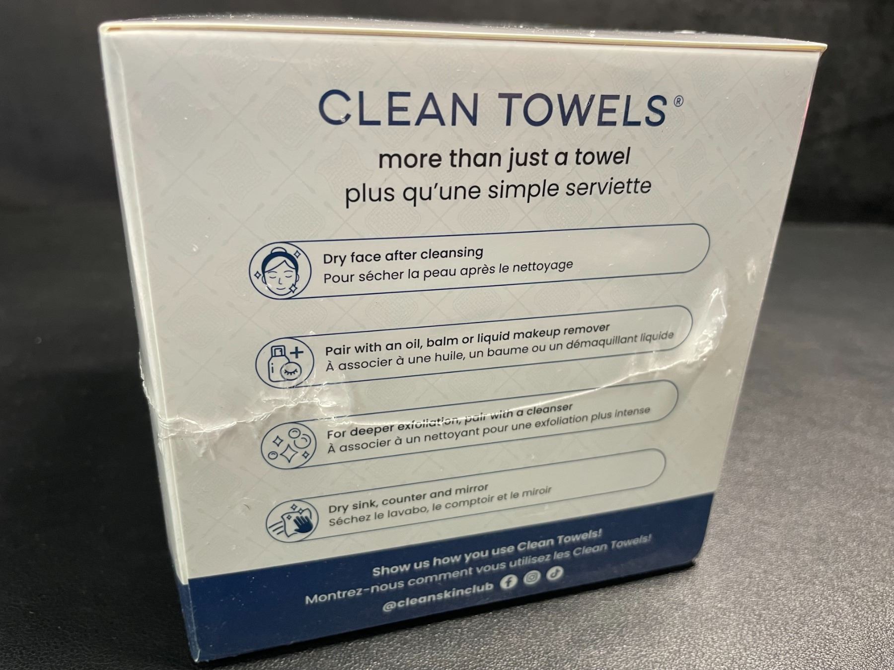 - 50 Single-use, dry facial towels that are dermatologist tested and approved.