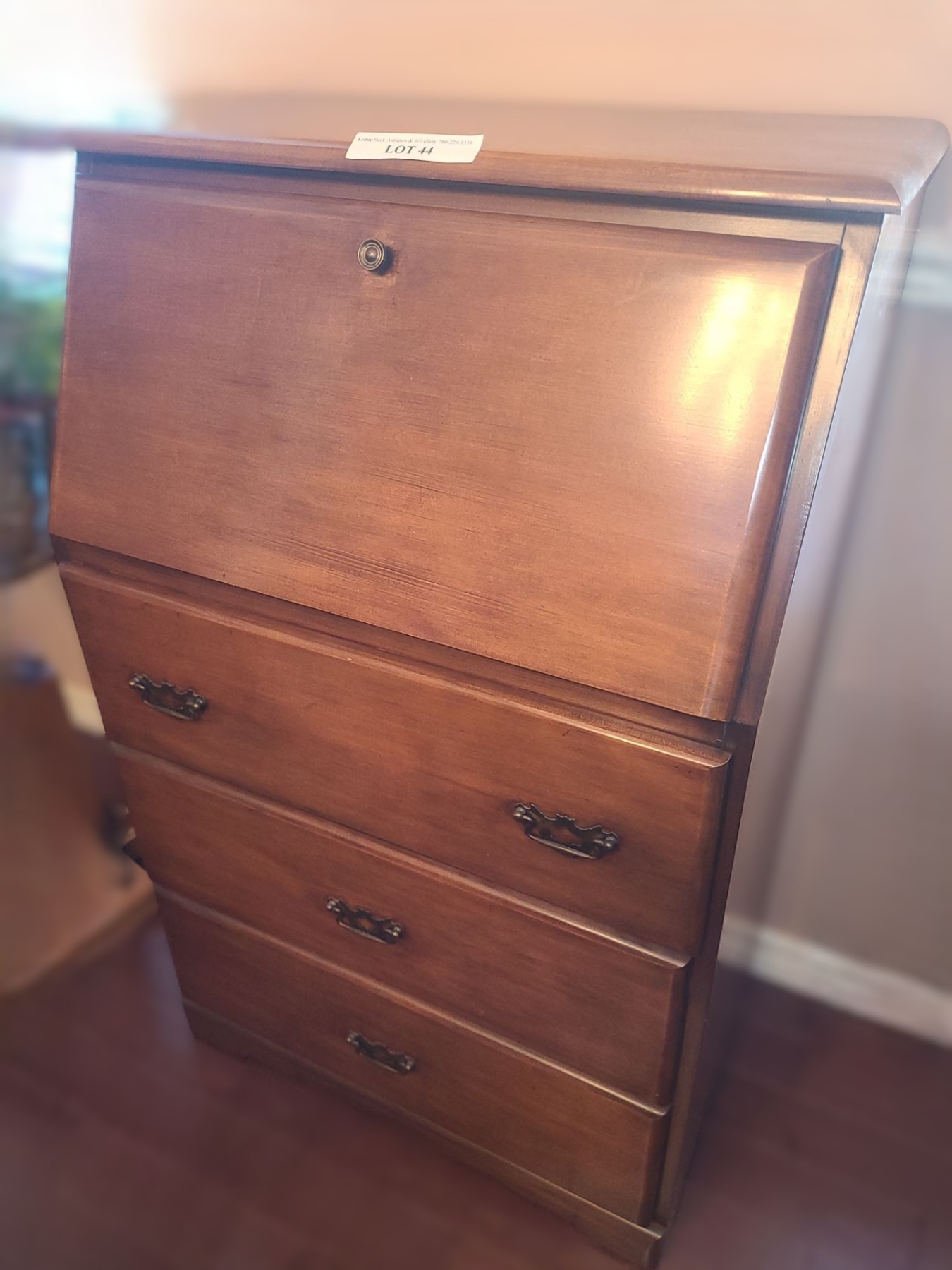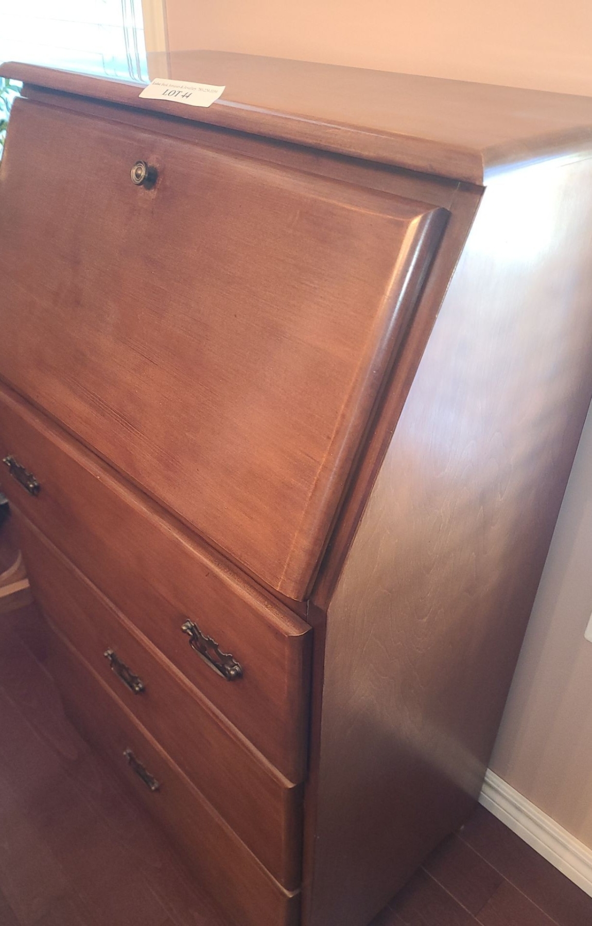 Lot 44 Wooden Drop Front Secretary Desk w 3 Drawers 27 w 43 h