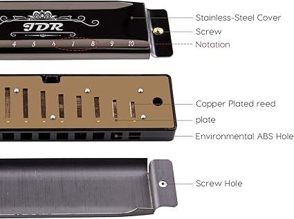 - JDR Harmonica C, Blues armonica Key of C 10 Hole 20 Tone with Case Mouth Organ Standard Diatonic for Beginner Adults Professional Player Teacher Parents Students Black New Year Gift