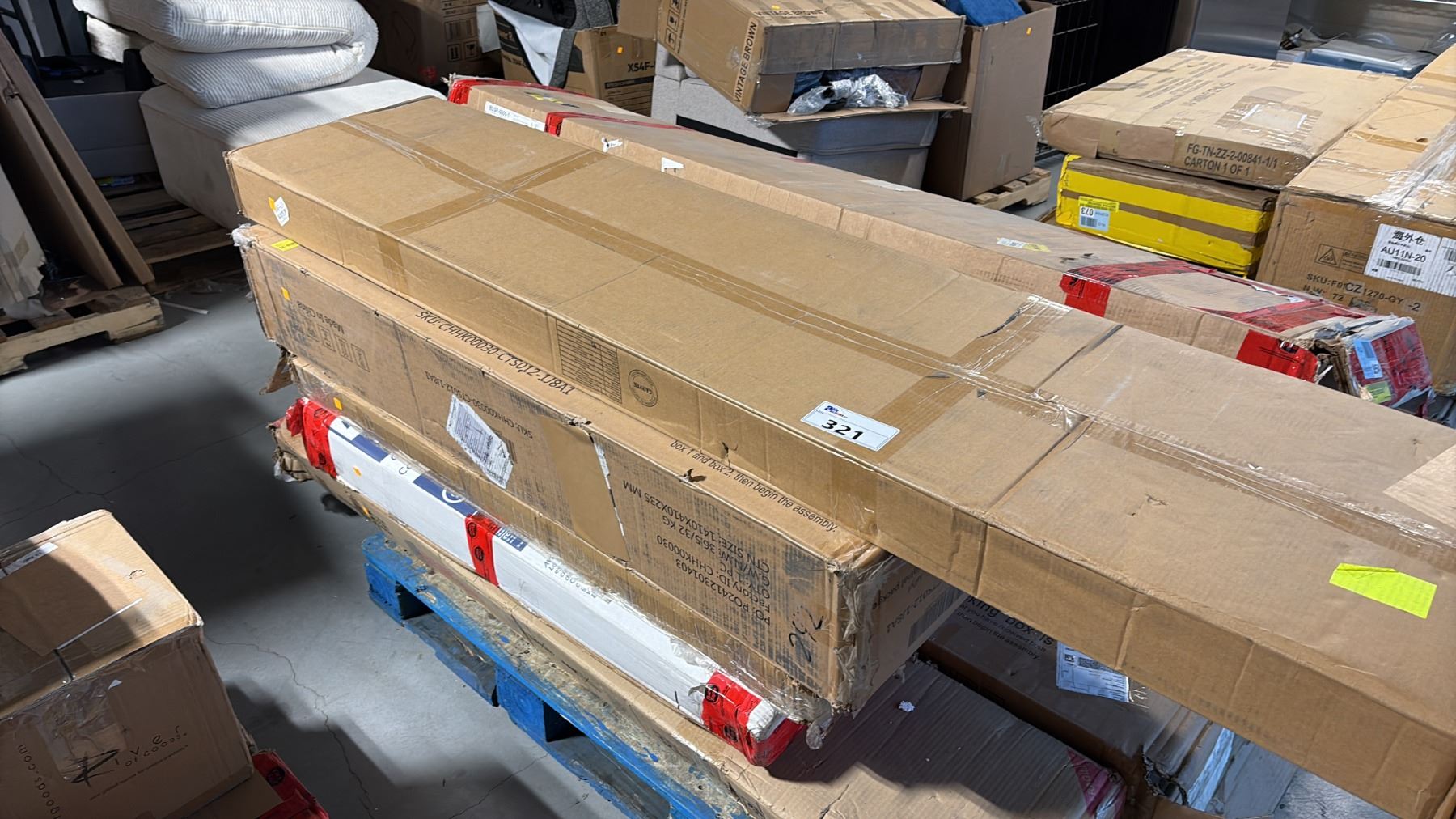 Lot 321 12 READY TO ASSEMBLE FURNITURE INCL SHOE RACK, FIREPLACE, DINING BENCH AND MORE