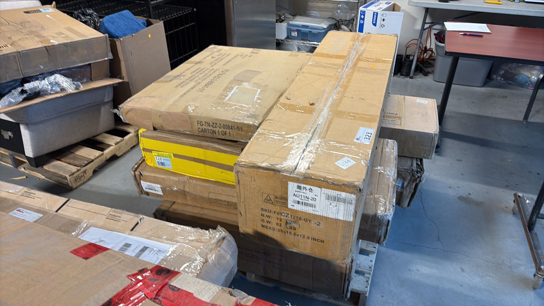 7 READY TO ASSEMBLE FURNITURE INCL BED FRAME, COFFEE TABLE, BOOK SHELF AND MORE