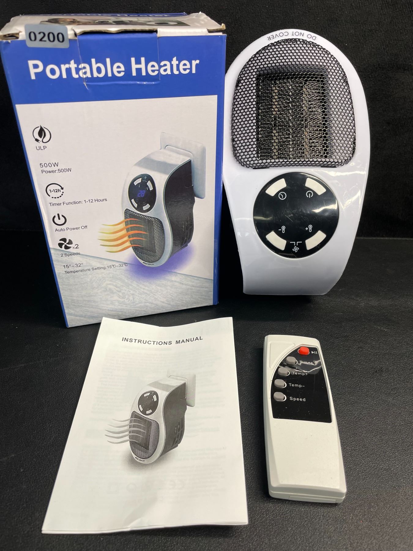 Lot 200 Portable Plug-In Heater; 500W Electric Heater with Remote Control - New