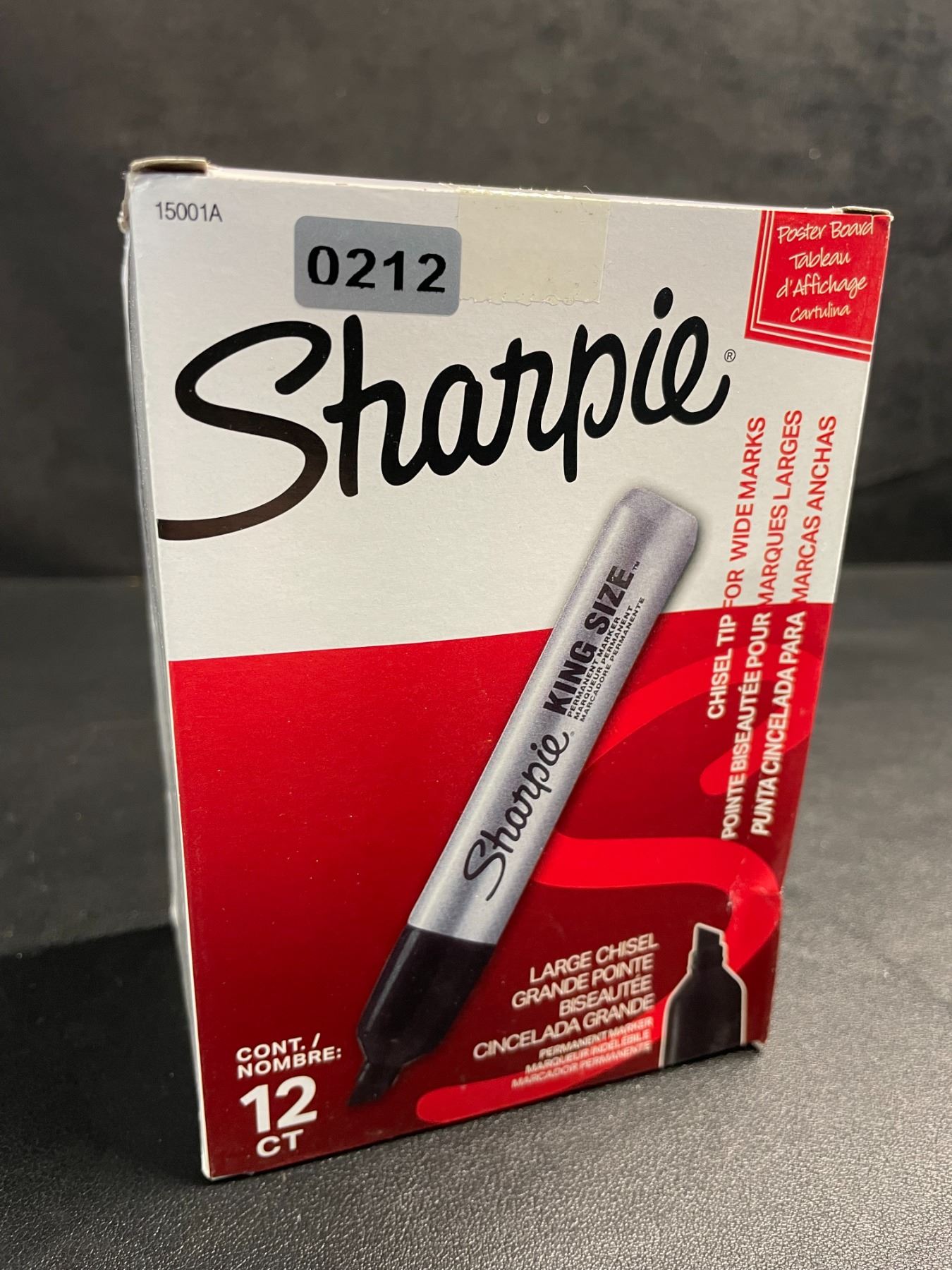 Lot 212 12-Pack Sharpie King-Size Permanent Markers; Large Chisel Tip Sharpies for Wide Marks (Black) - New