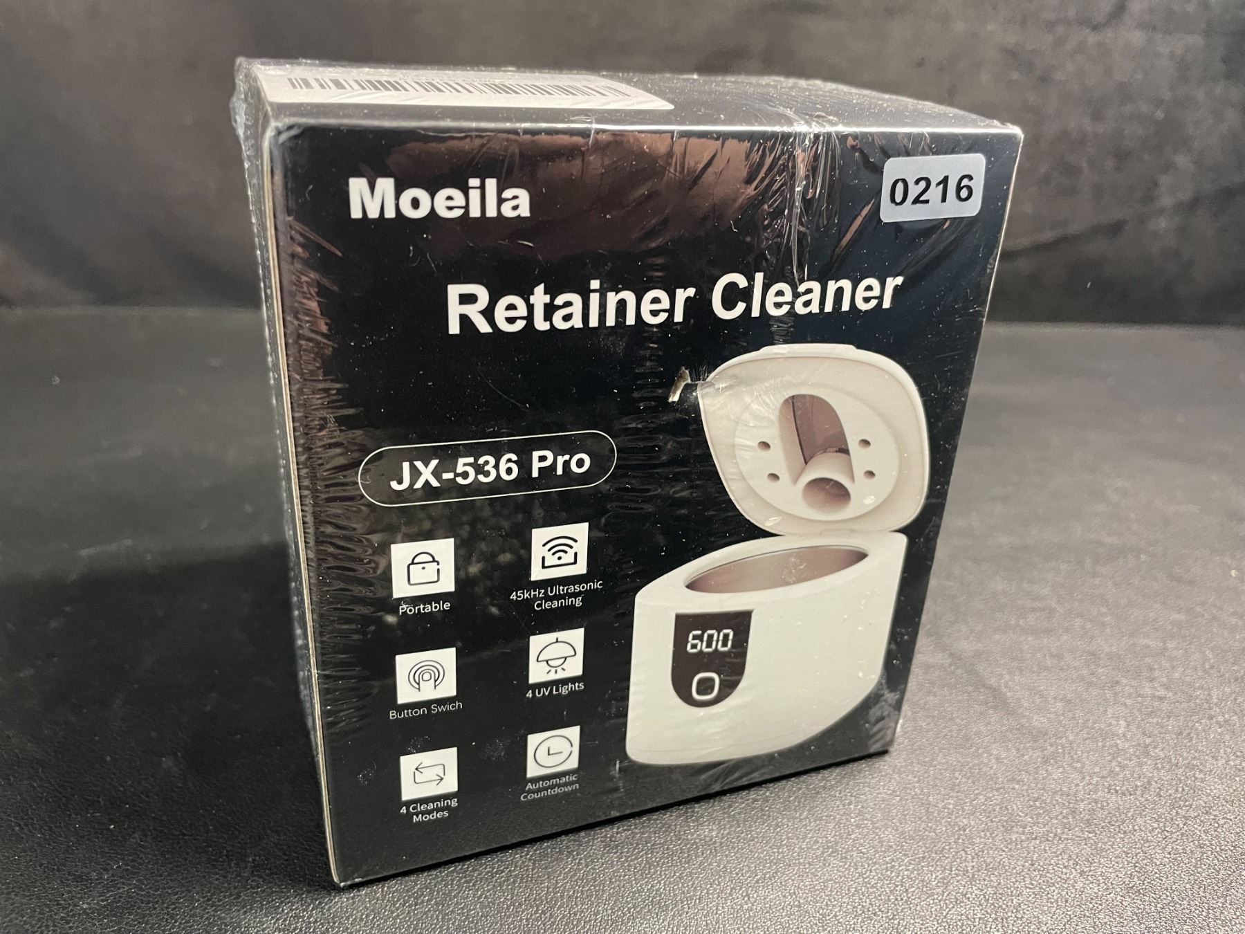 - Ultrasonic Retainer Cleaner Machine, Upgraded 45kHz Ultrasonic Cleaner for Mouth Guard Braces, Night Guards, Toothbrush Heads & Jewlery with 200ML, 4 Modes and Digital Timer Dental Cleaning Pod (White)