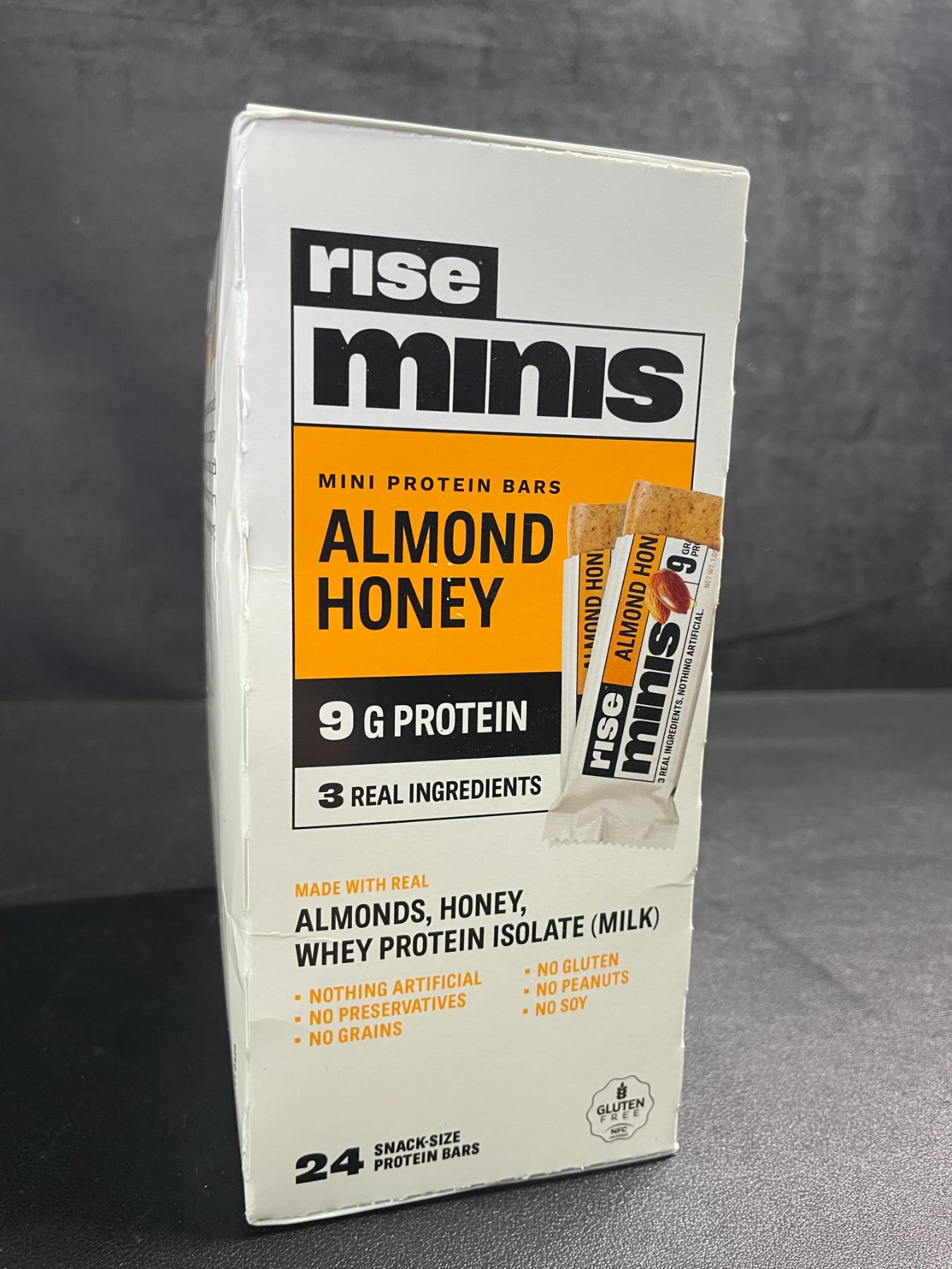 - Rise Whey Protein Mini Bars - Almond Honey | Breakfast Bar & Protein Snack - 9g Protein 4g Fiber Just 3 Whole Food Ingredients Gluten-Free Soy Free