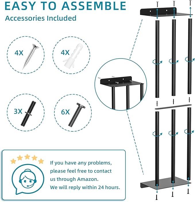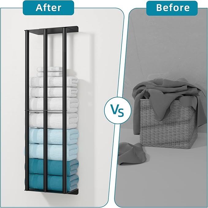 - 31" Wall Mounted Towel Racks, Sturdy 2 Metal Towel Shelves and 3 Vertical Bars, Can Holds 6 Large Rolled Towels - Rolled Towel Holder (Matte Black)