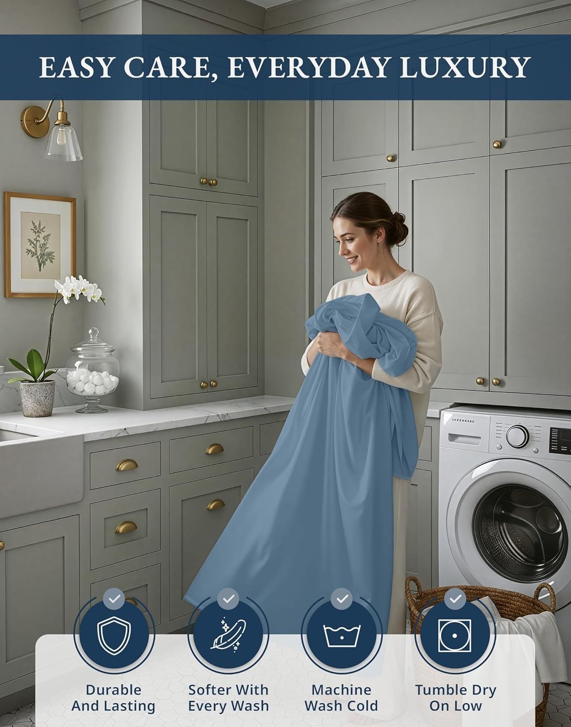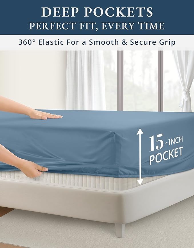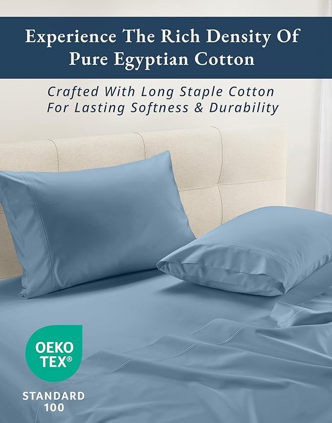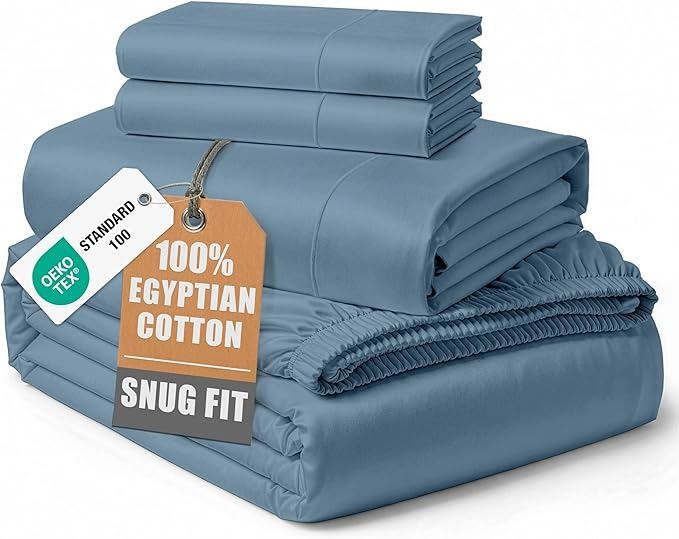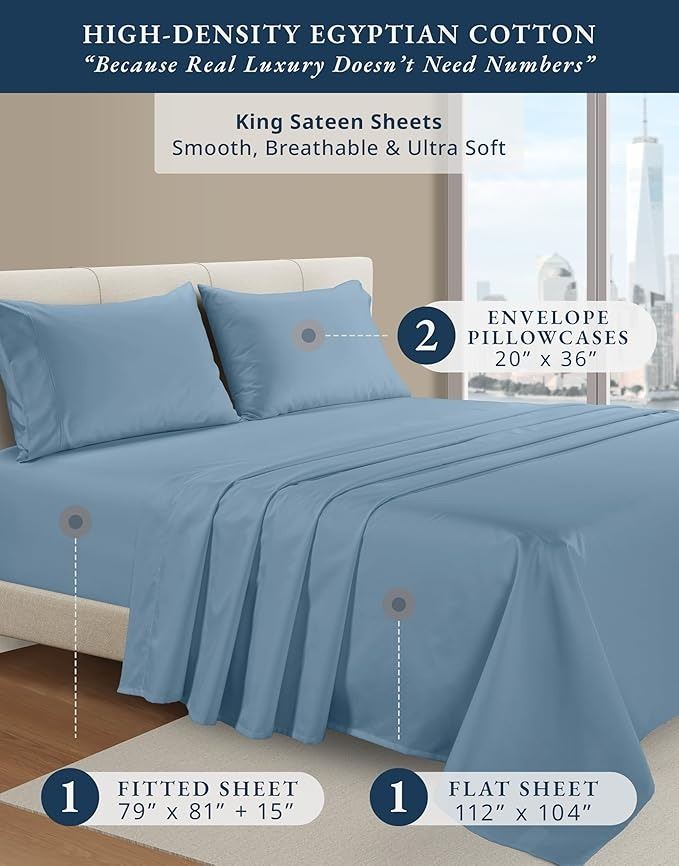 - LANE LINEN 100% Egyptian Cotton Bed Sheets - 4-Piece King Sheets Set, Long Staple Cotton Bedding Sheets, Sateen Weave, Luxury Hotel Sheets, Fits Up to 16" Mattress - Estate Blue
