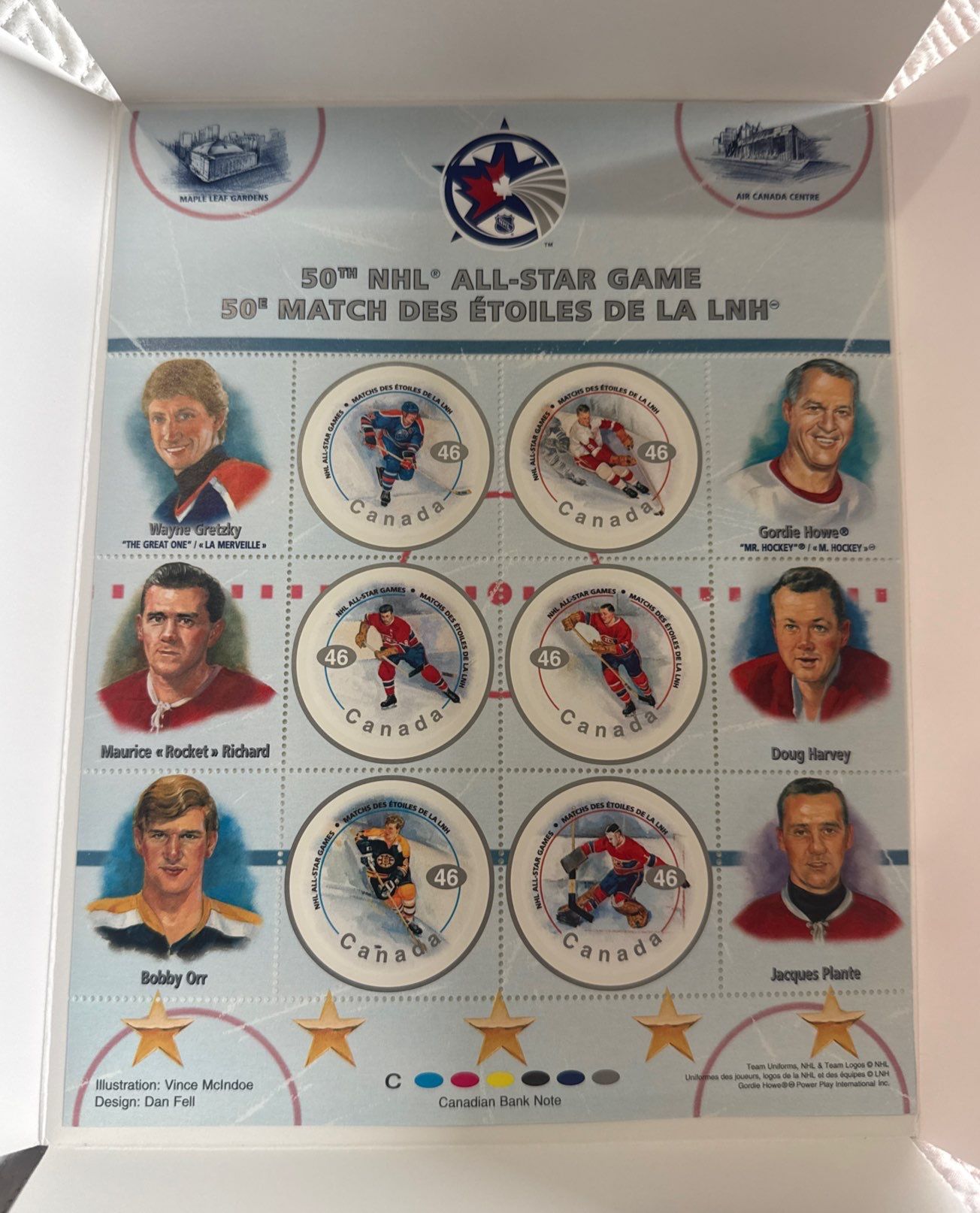 50 NHL All-Star Game Stamp Booklets- Collectible Oilers Memorabilia & Stamp Flaps