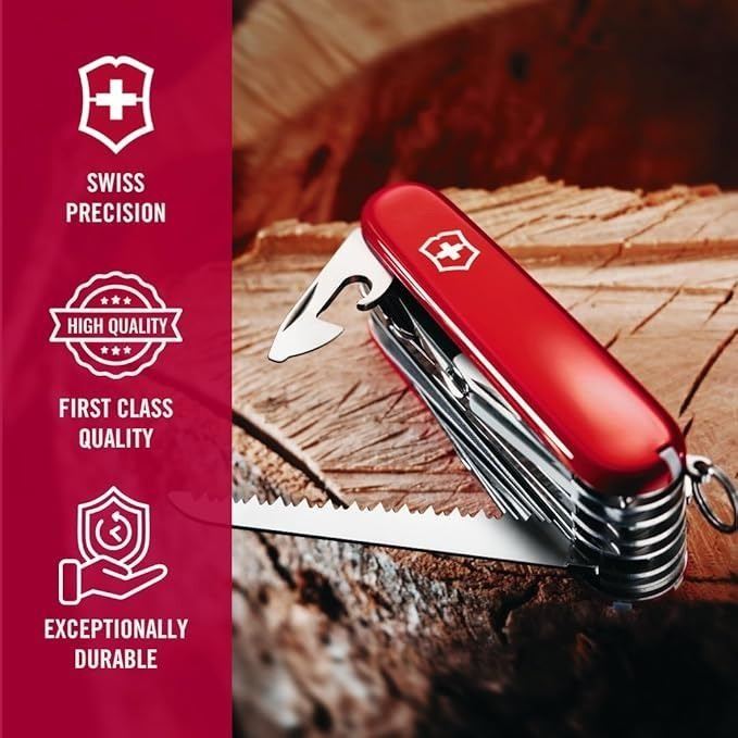 - 3.5-inch Swiss Army Knife with a set of 33 tools to use while camping, hiking, fishing, and more
