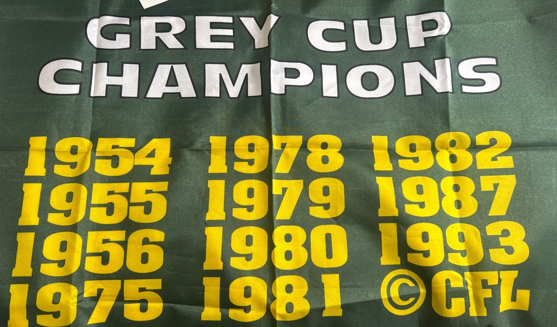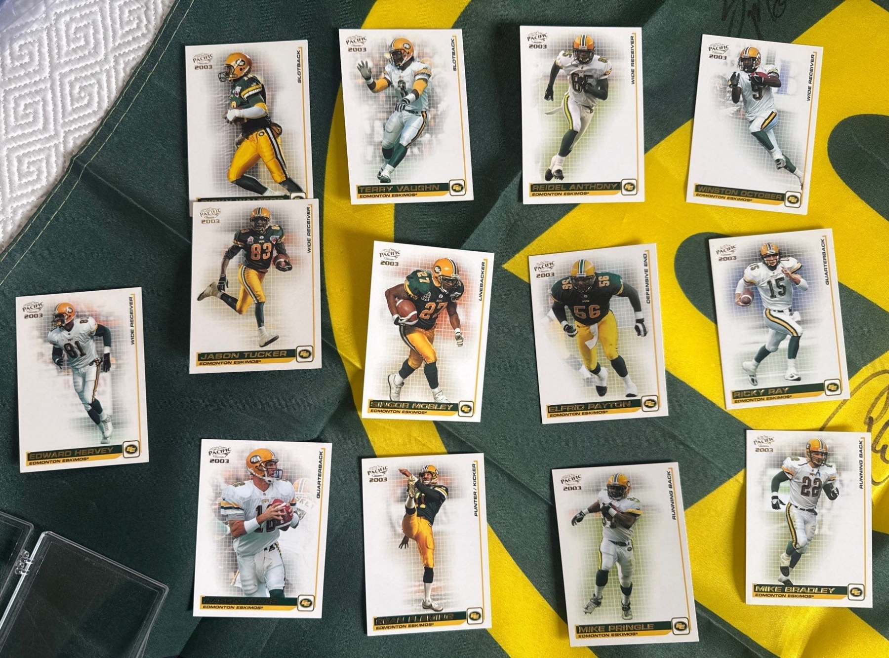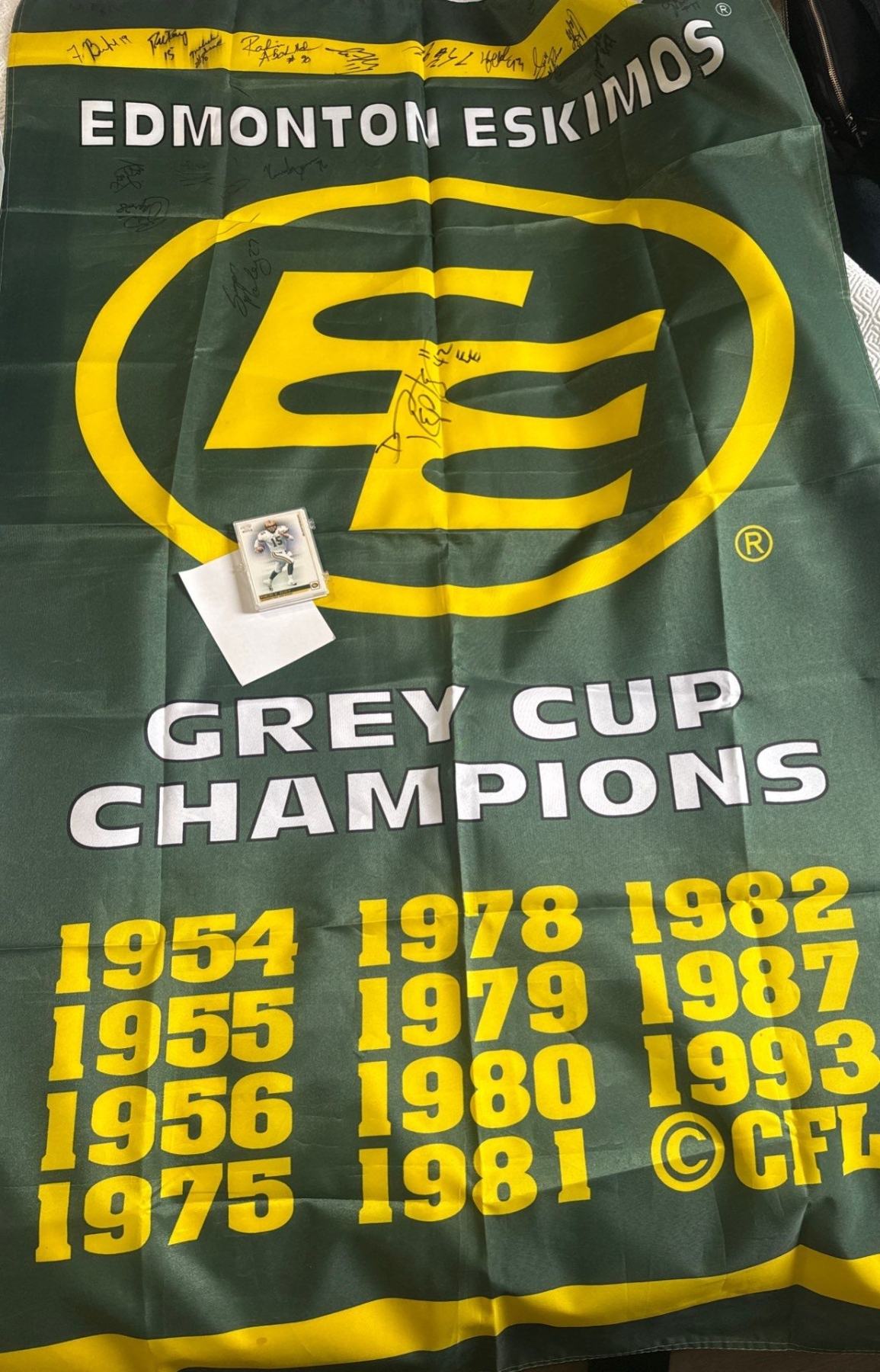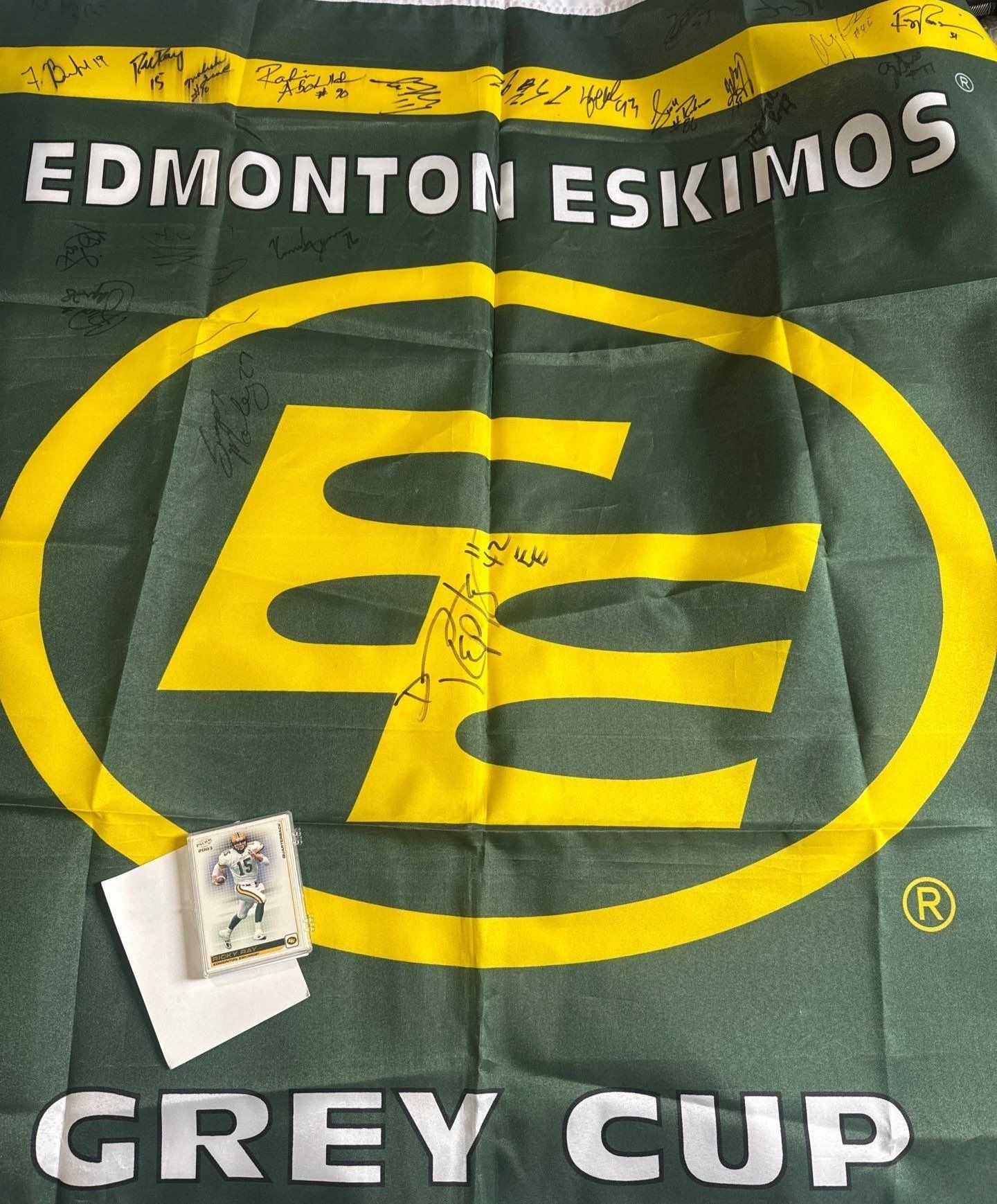 CFL Edmonton Eskimos Grey Cup Champions Autographed Flag & Team Cards