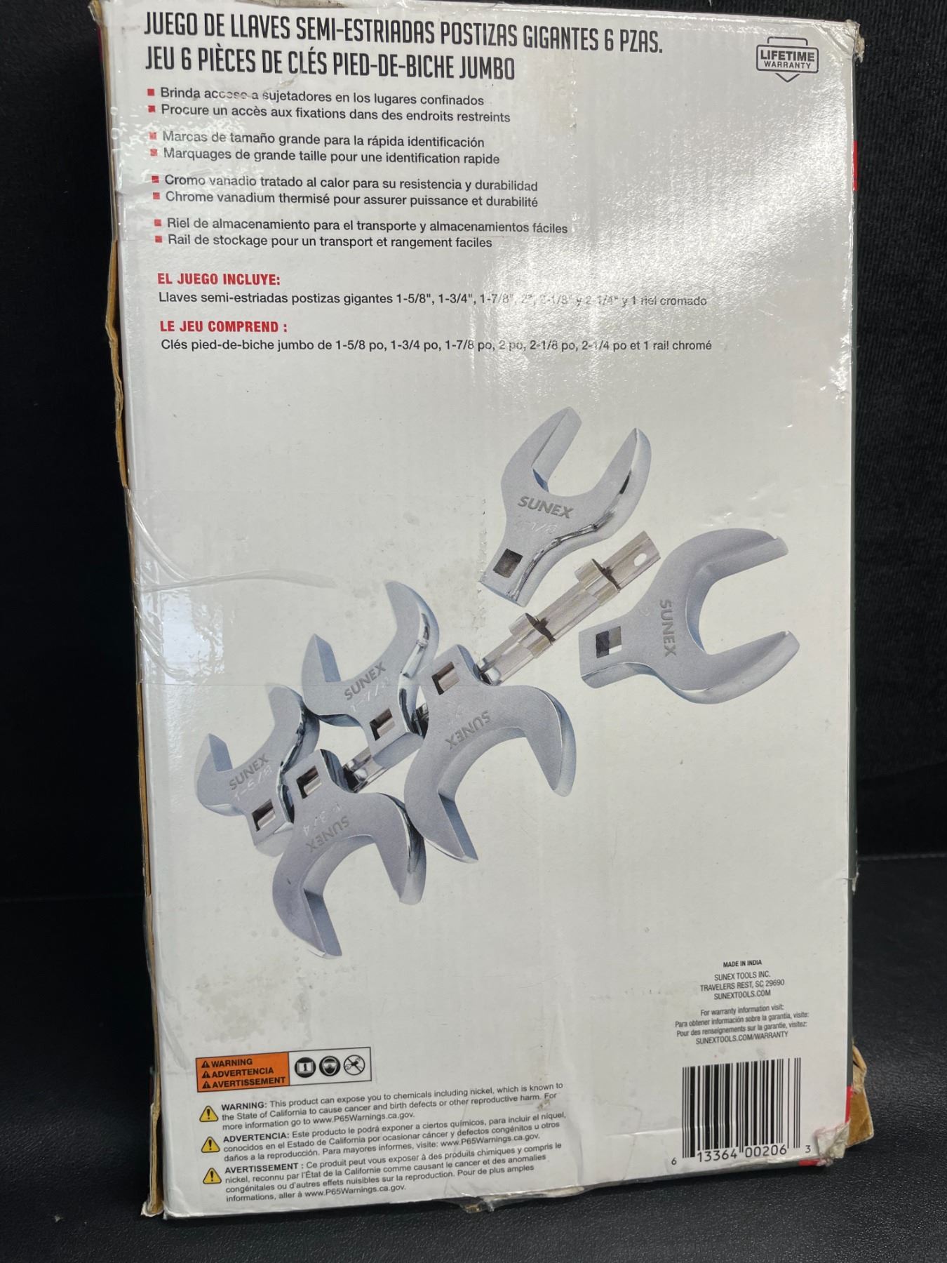 Lot 243 Sunex Tools 6PC 1/2" Drive Jumbo Crowfoot Wrench Tool Set - New