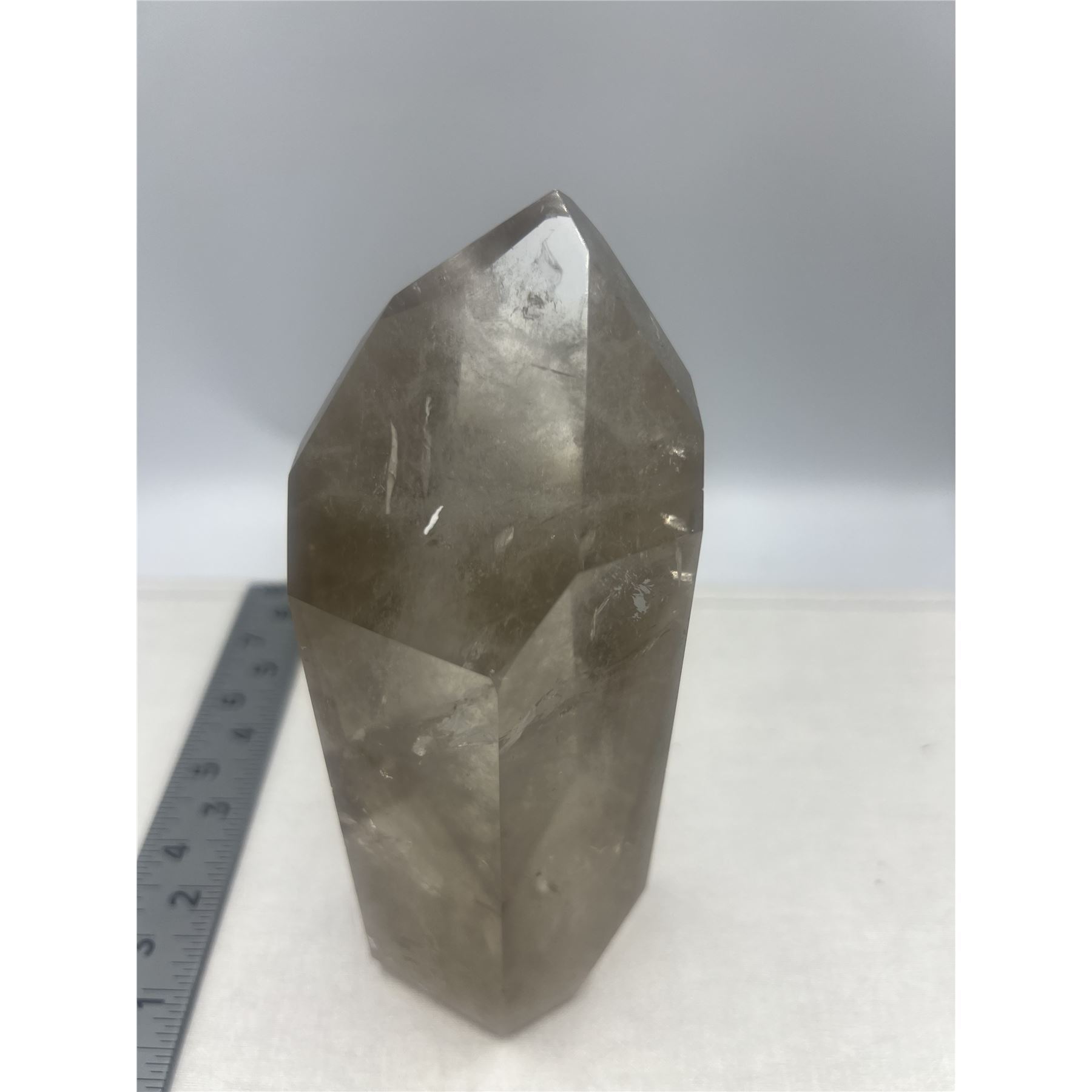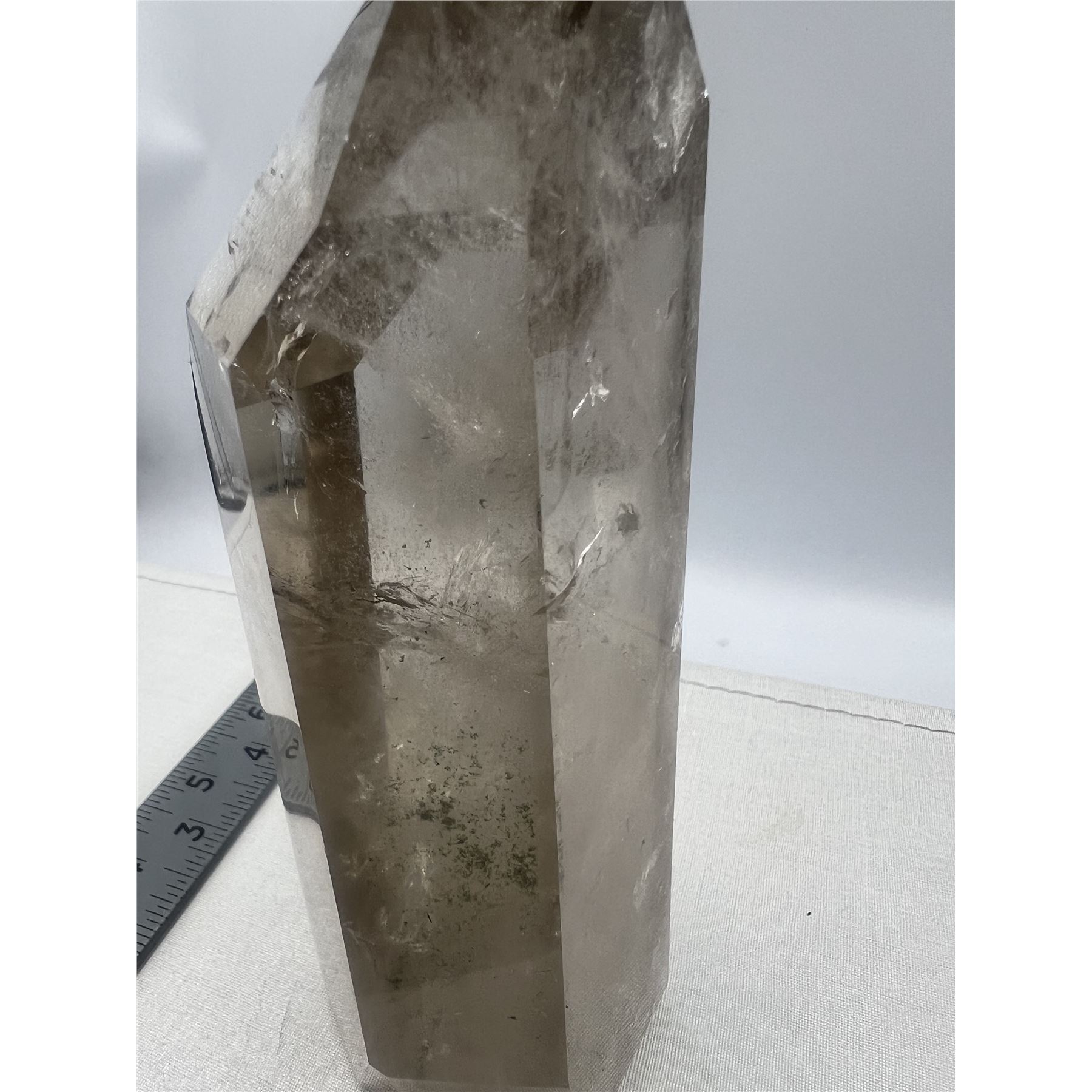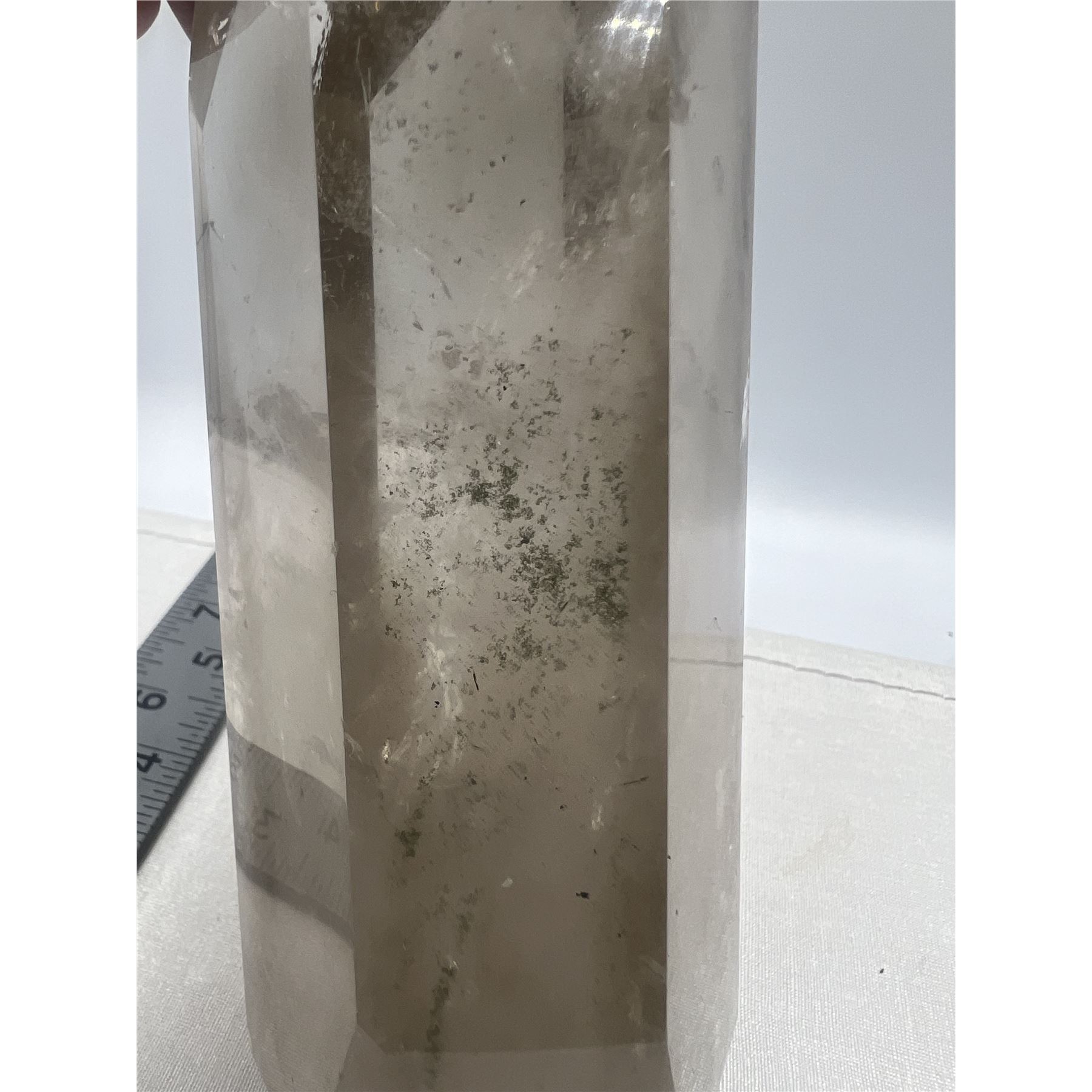 6.7 X 2.3 INCH SMOKY QUARTZ TOWER WITH GREEN GARDEN INCULSION