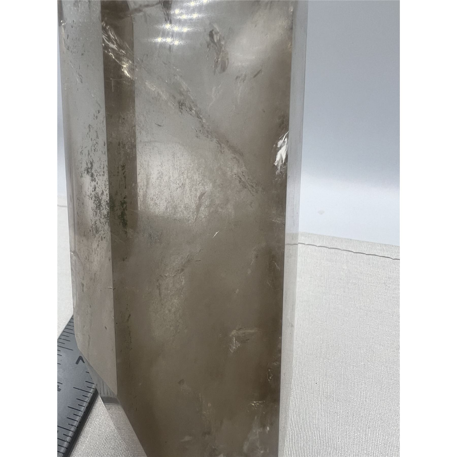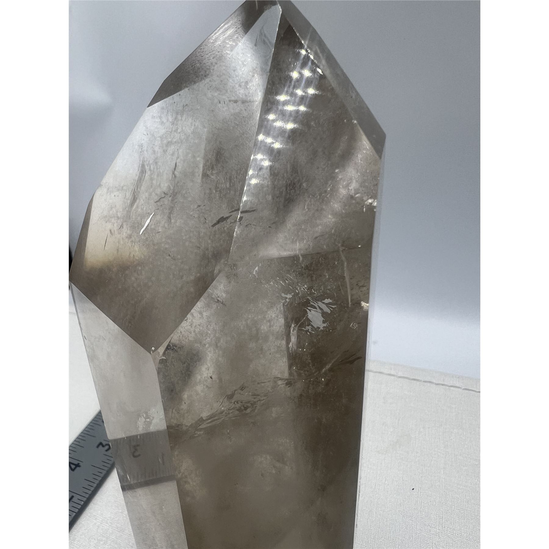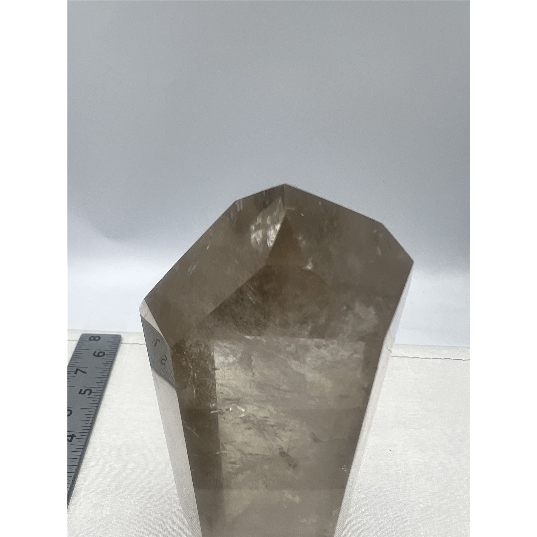 Lot 94 6.7 X 2.3 INCH SMOKY QUARTZ TOWER WITH GREEN GARDEN INCULSION