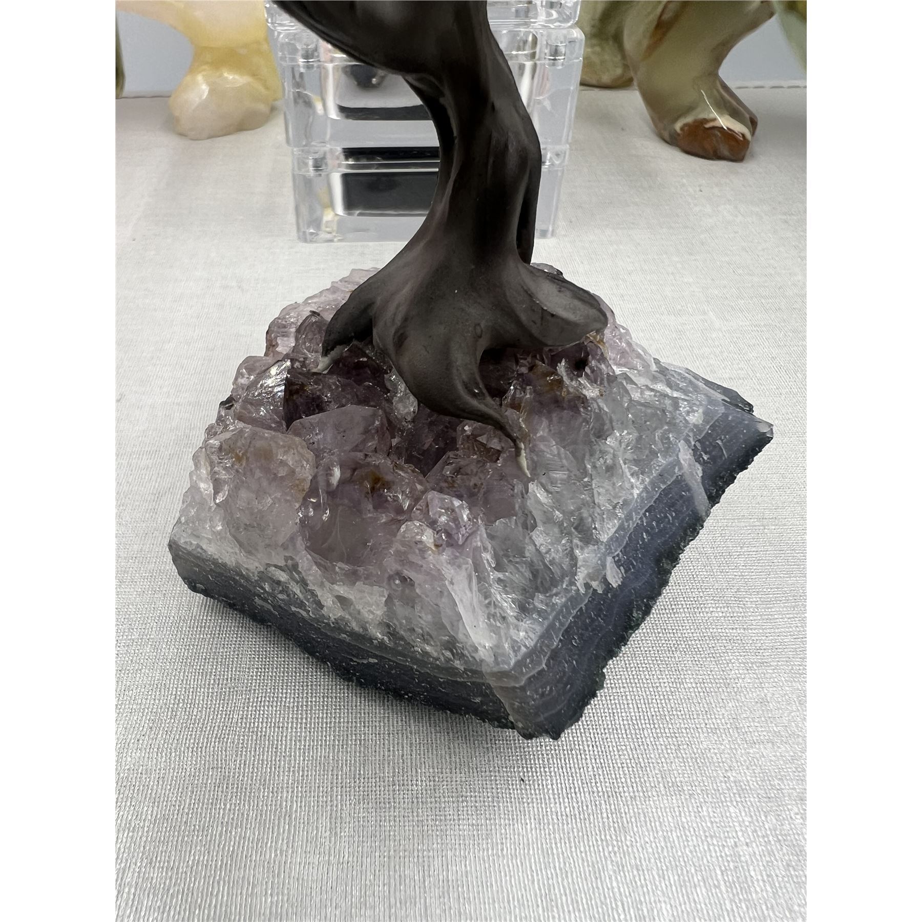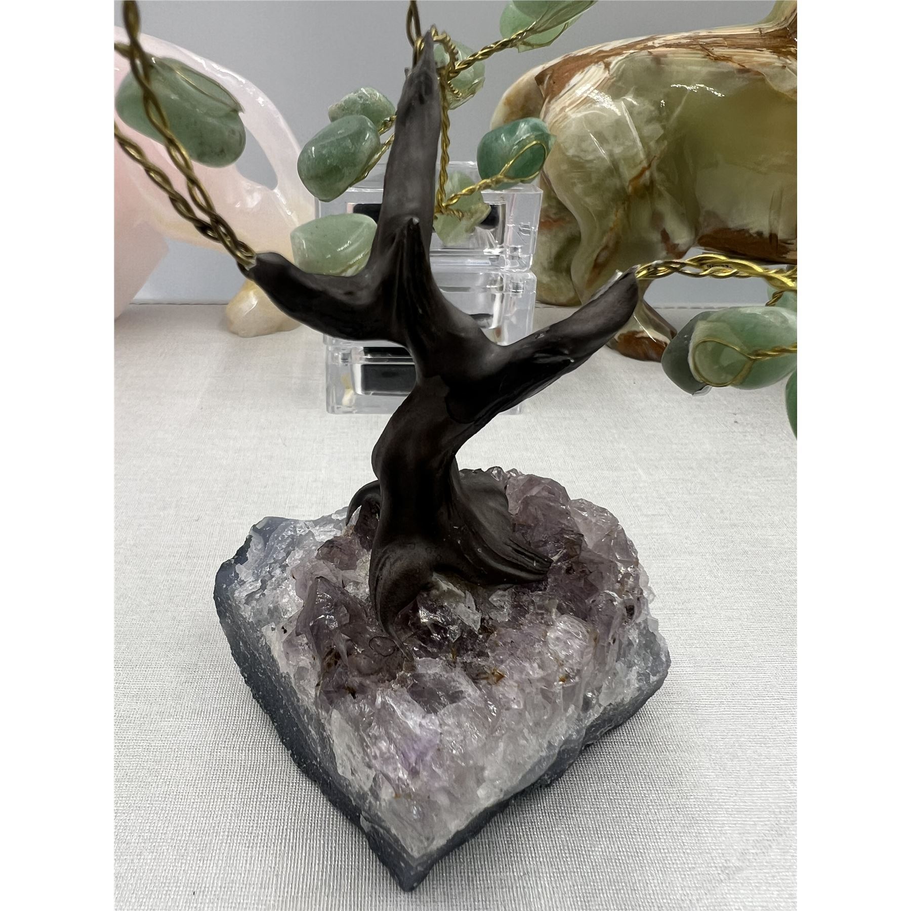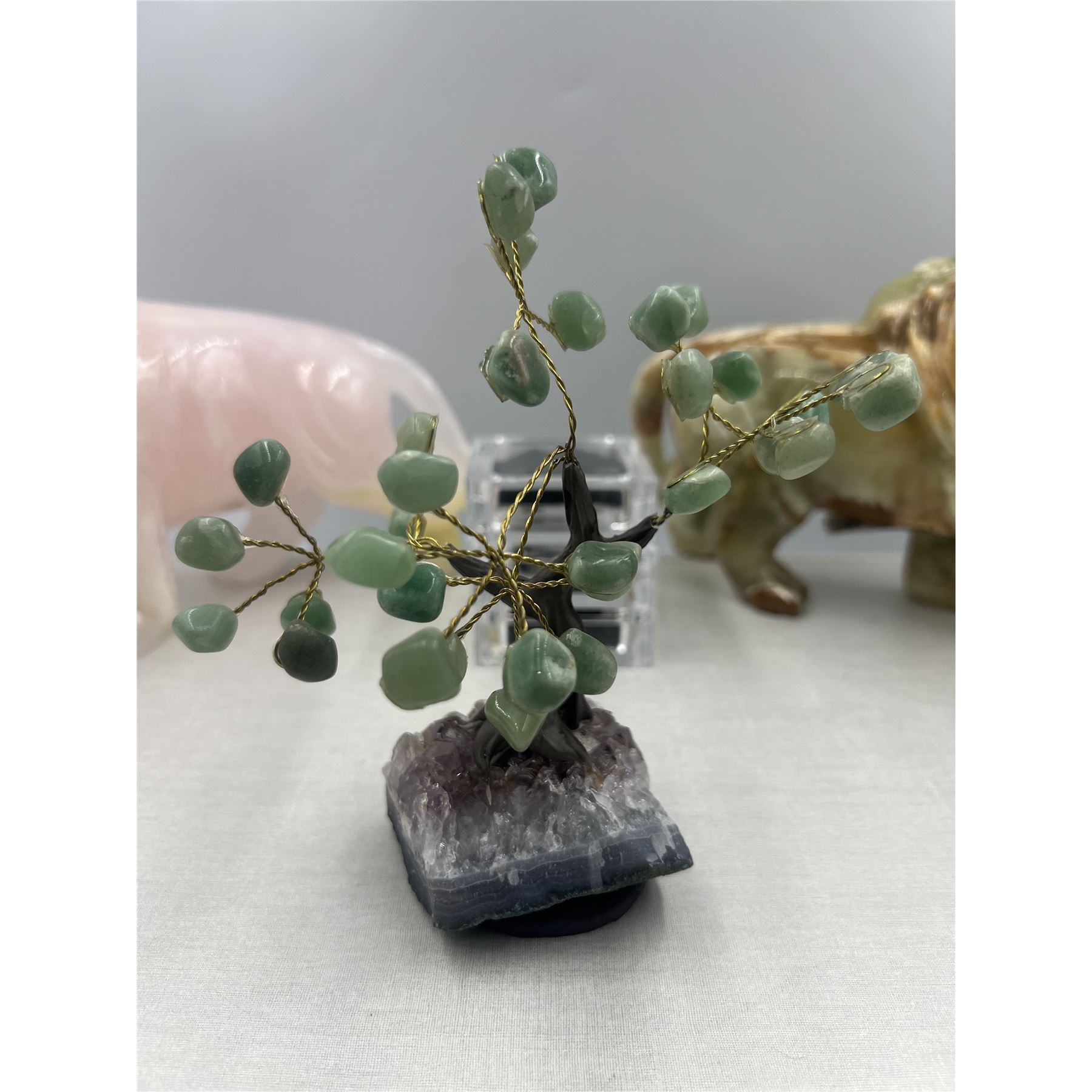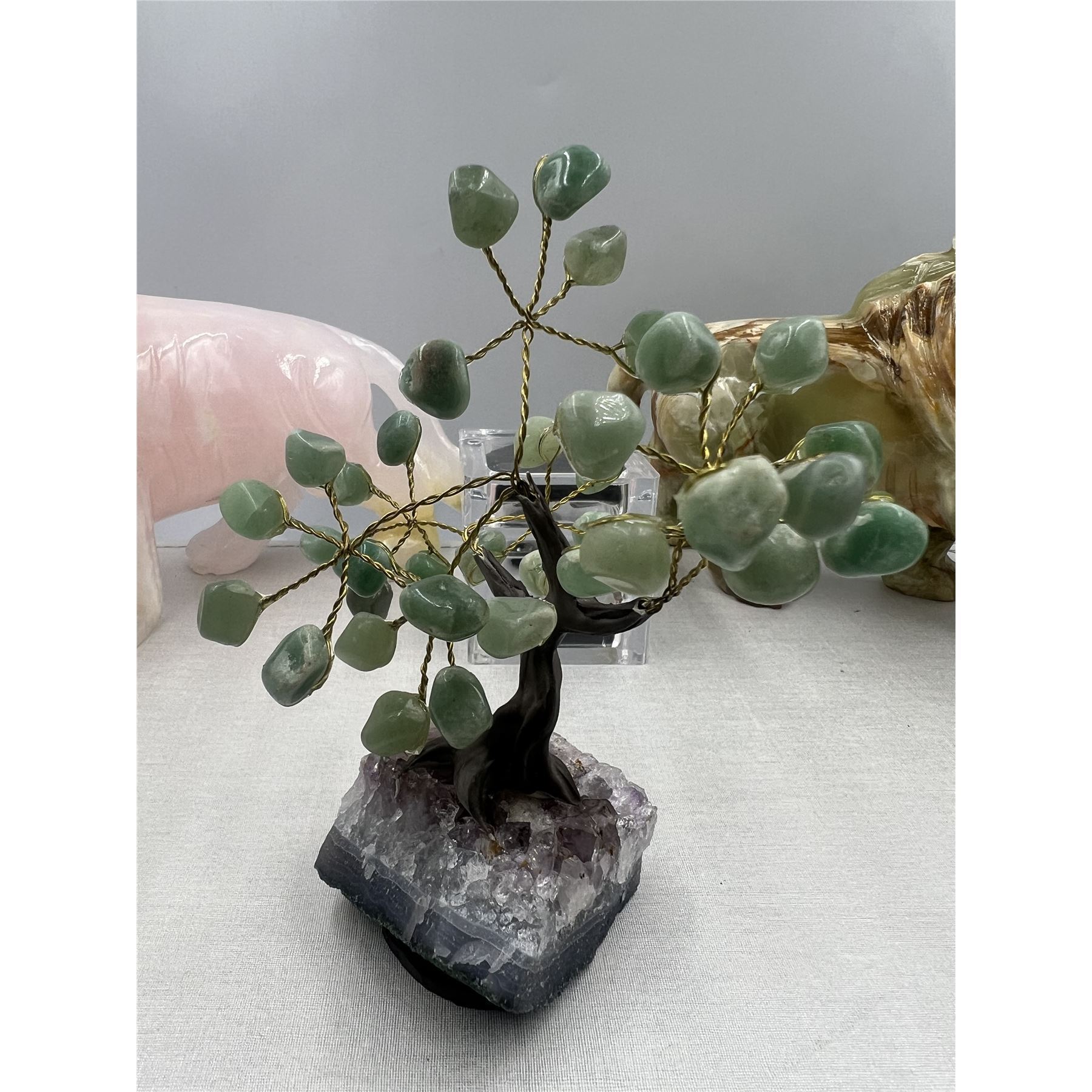 6.5 X 6 INCH GREEN AVENTURINE BONSAI TREE WITH AMETHYST BASE