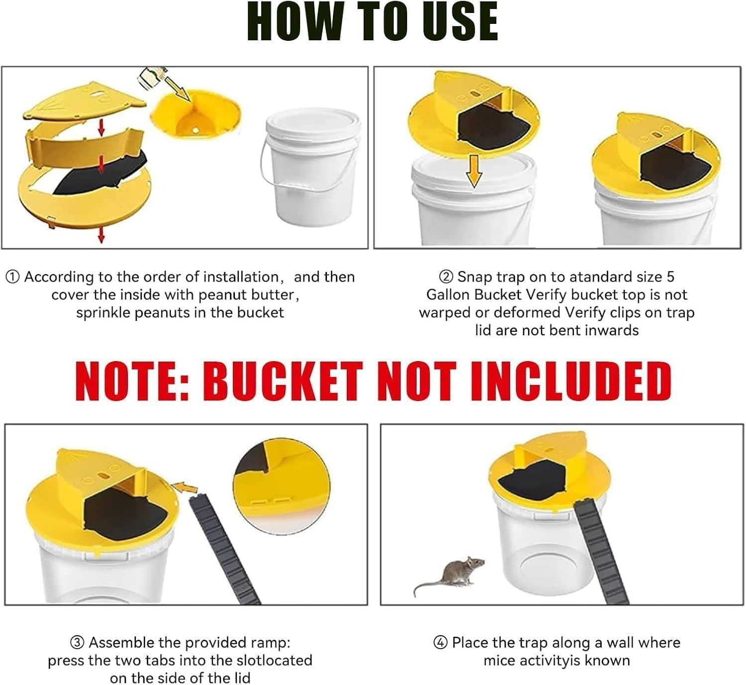 - EASY TO USE: Simply snap it onto a standard-sized 5-gallon bucket and you're ready to catch mice, no need to deal with disposable traps that are dangerously ineffective and unsanitary.(5 Gallon Bucket is NOT included - Traps/Lids only)