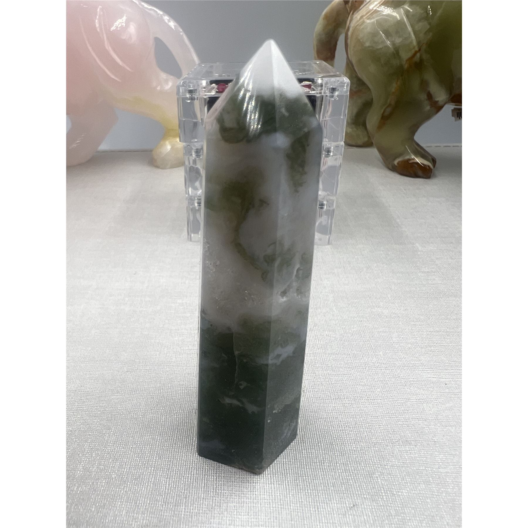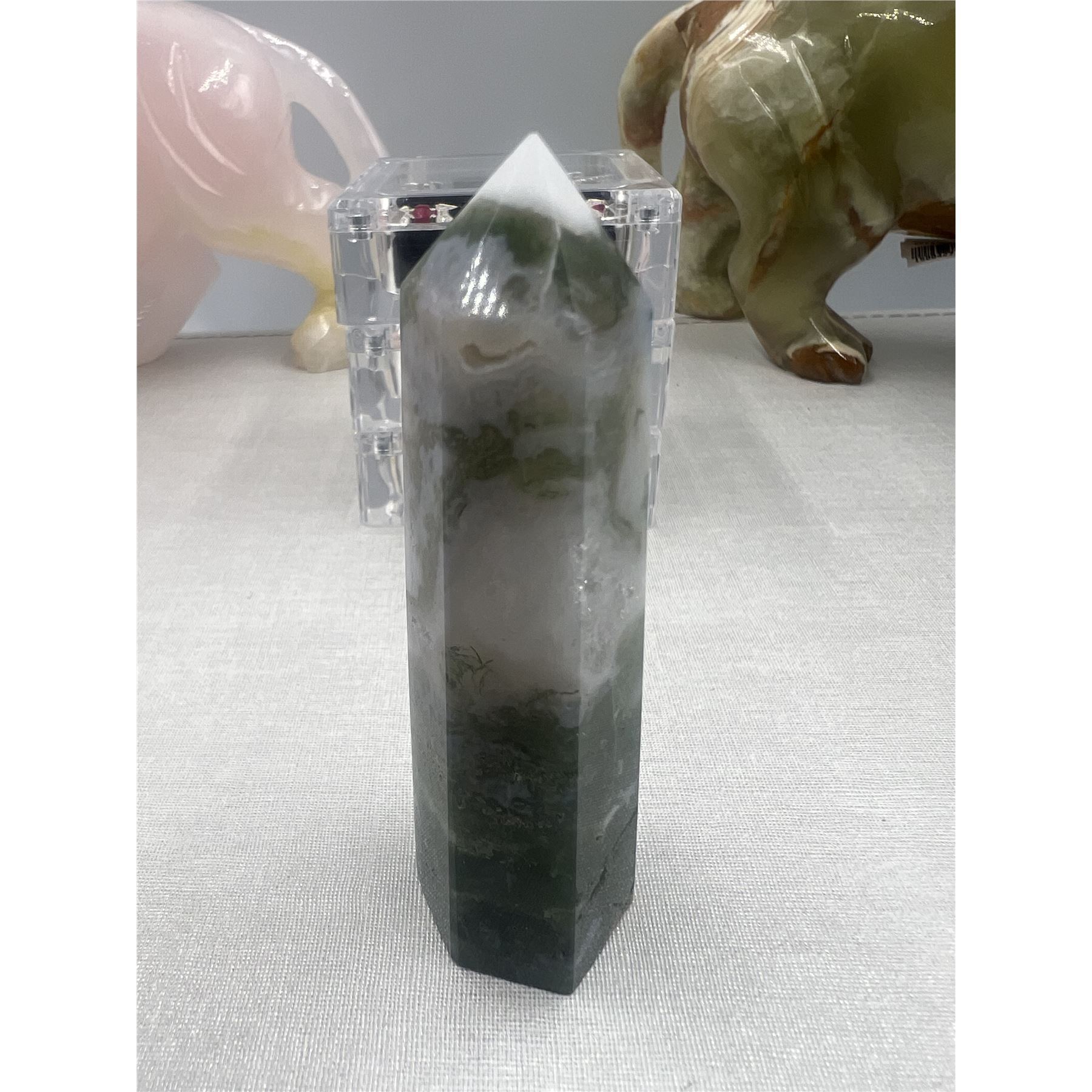 Lot 125 3.5 INCH MOSS AGATE WITH DRUZY TOWER