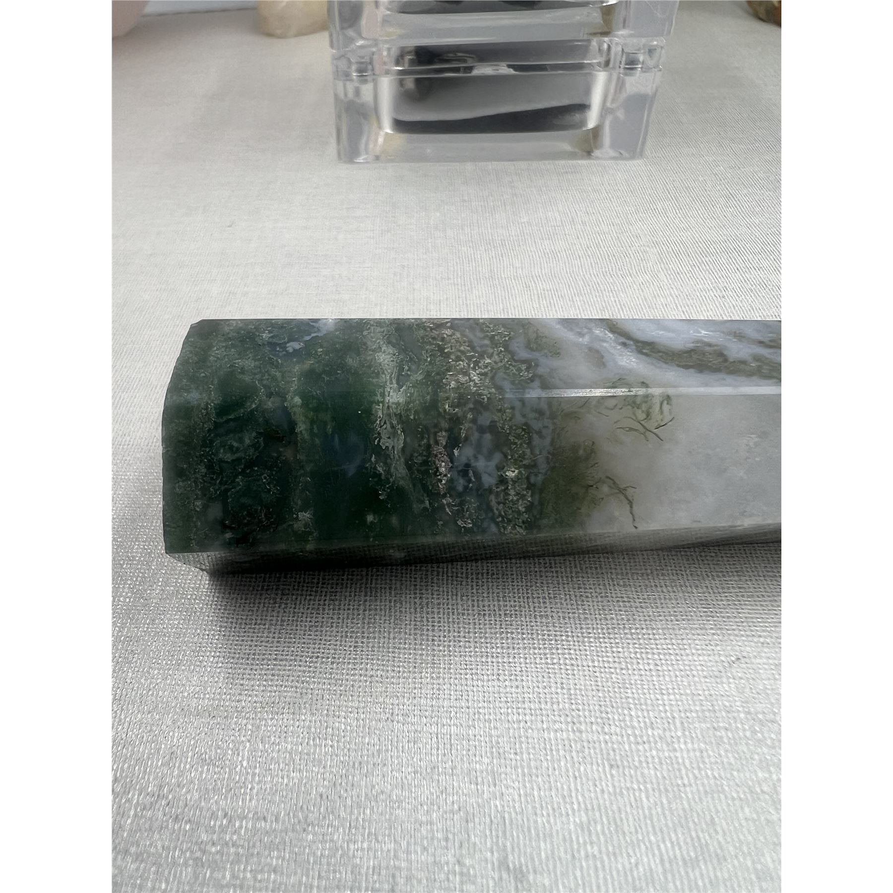 3.5 INCH MOSS AGATE WITH DRUZY TOWER