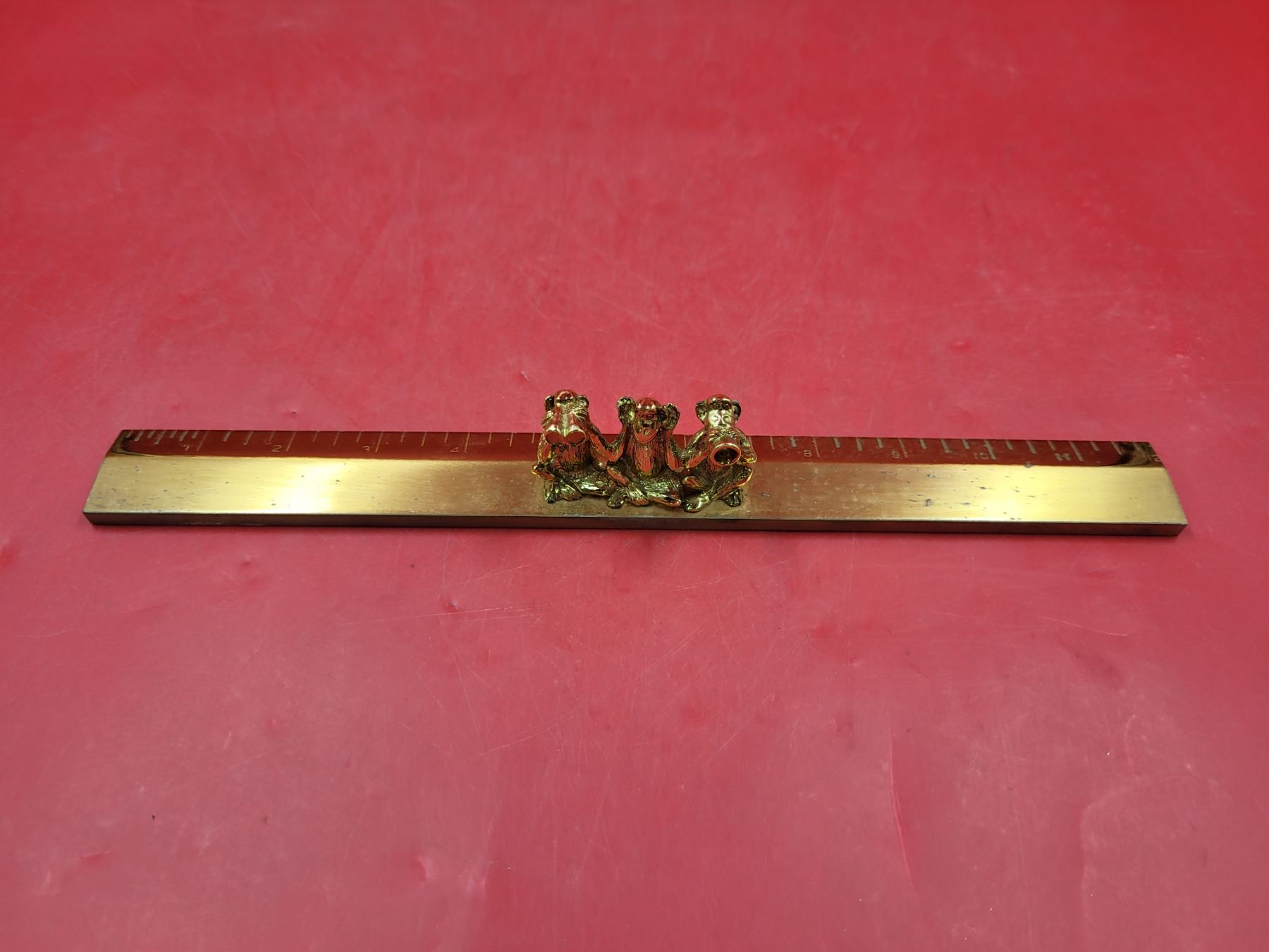 Lot 636 Brass See No Evil, Hear No Evil, Speak No Evil Monkey Ruler