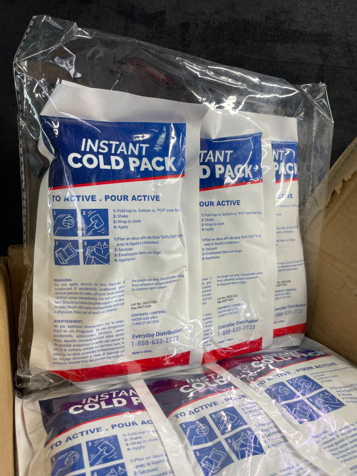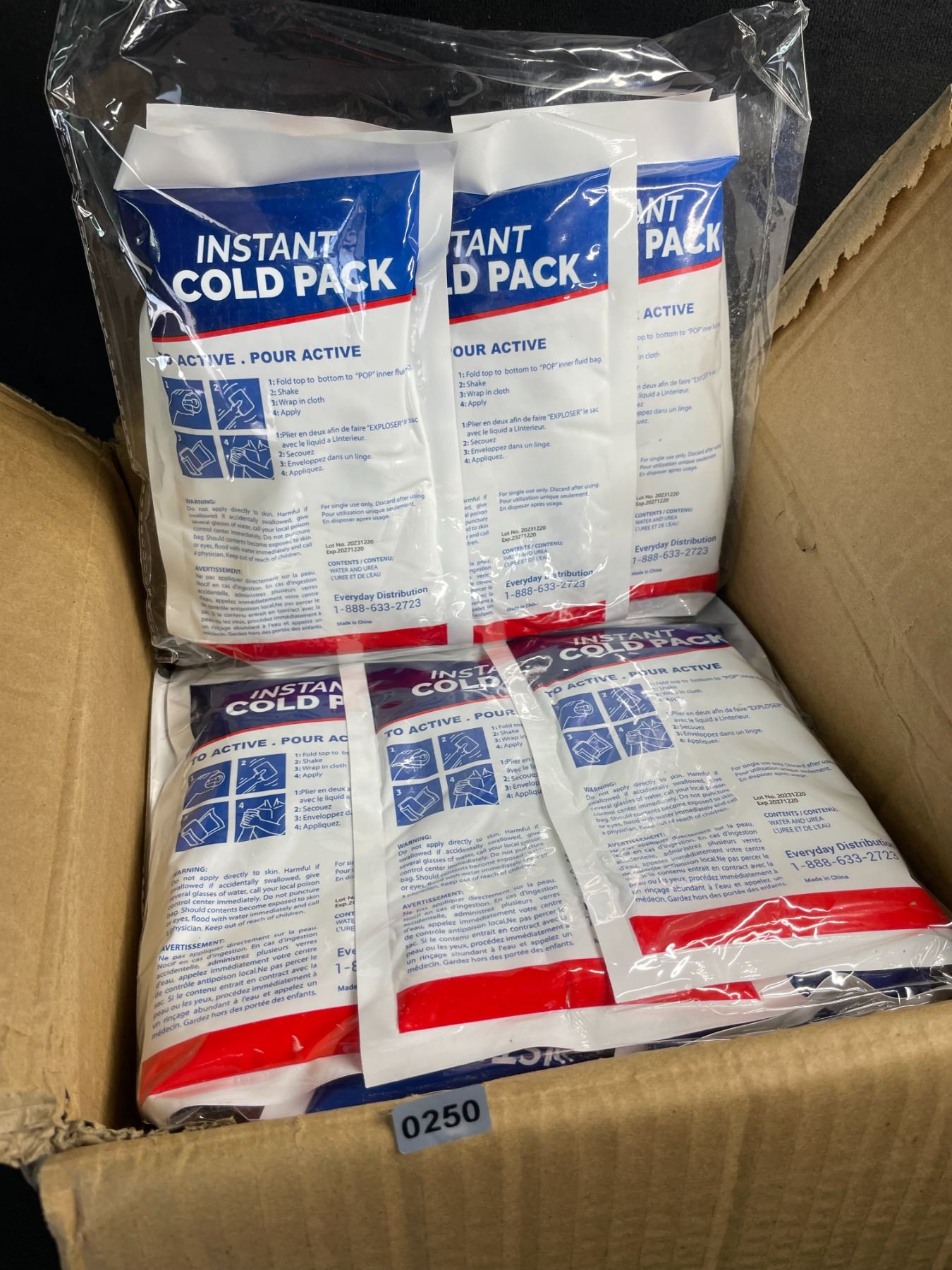 Lot 250 36-Pack Box of Instant Cold Packs (7.5" x 4.5" Size) Great for Injuries, Sprains, Pain Relief, etc.