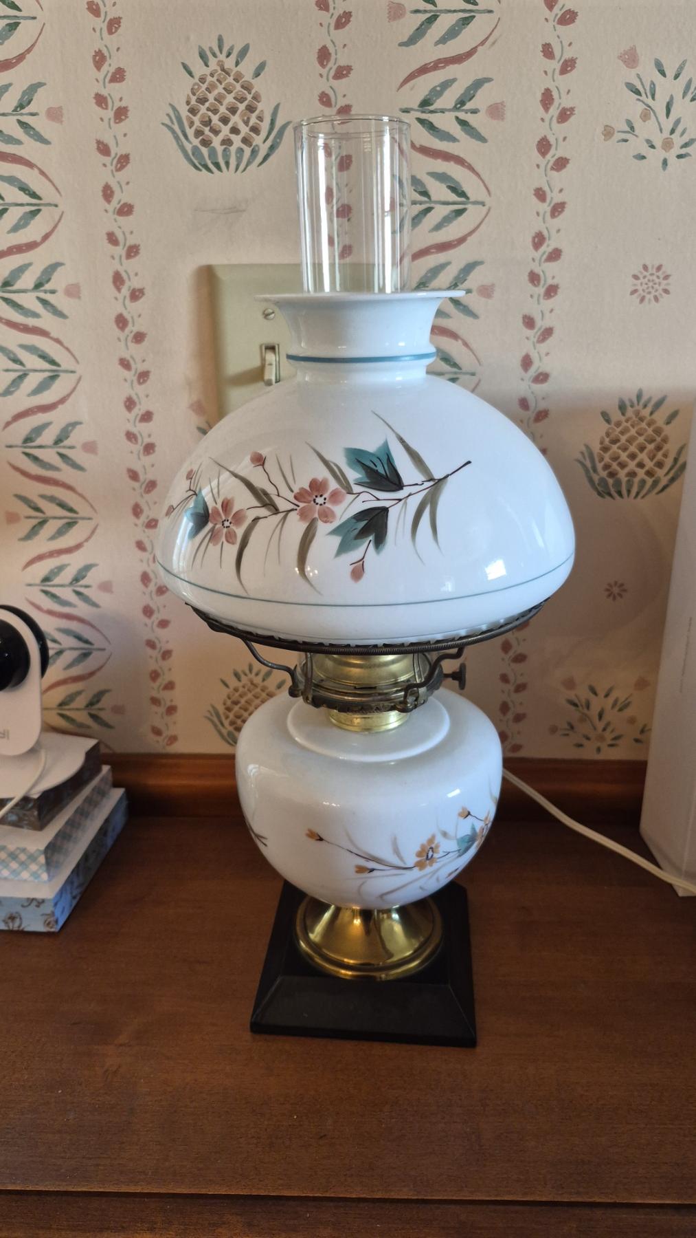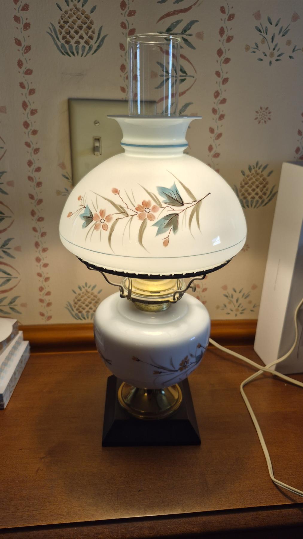 Pickup In Canton - 17" Tall Table Lamp With Floral Shade & Chimney
