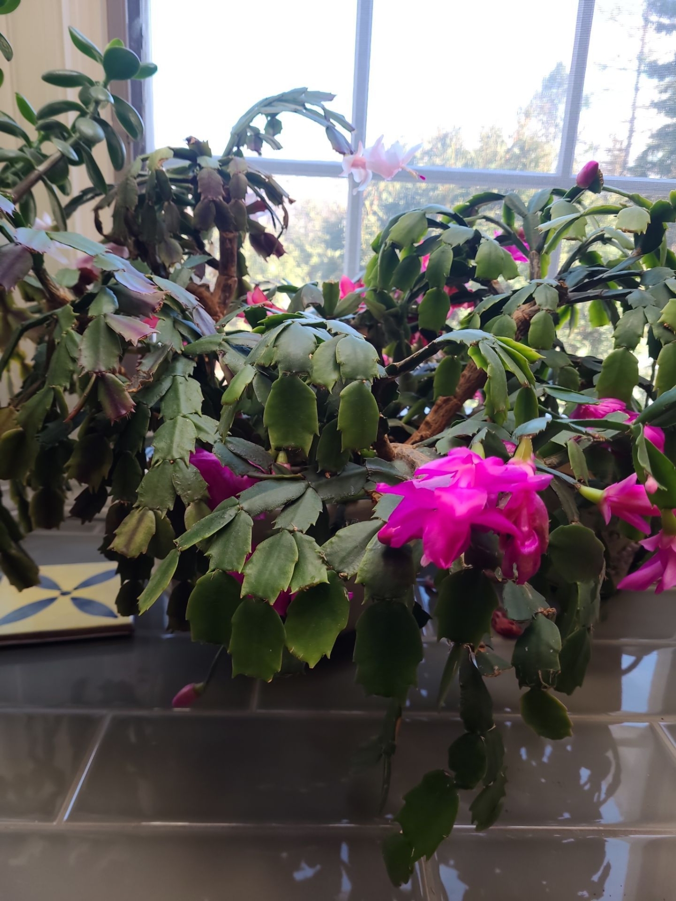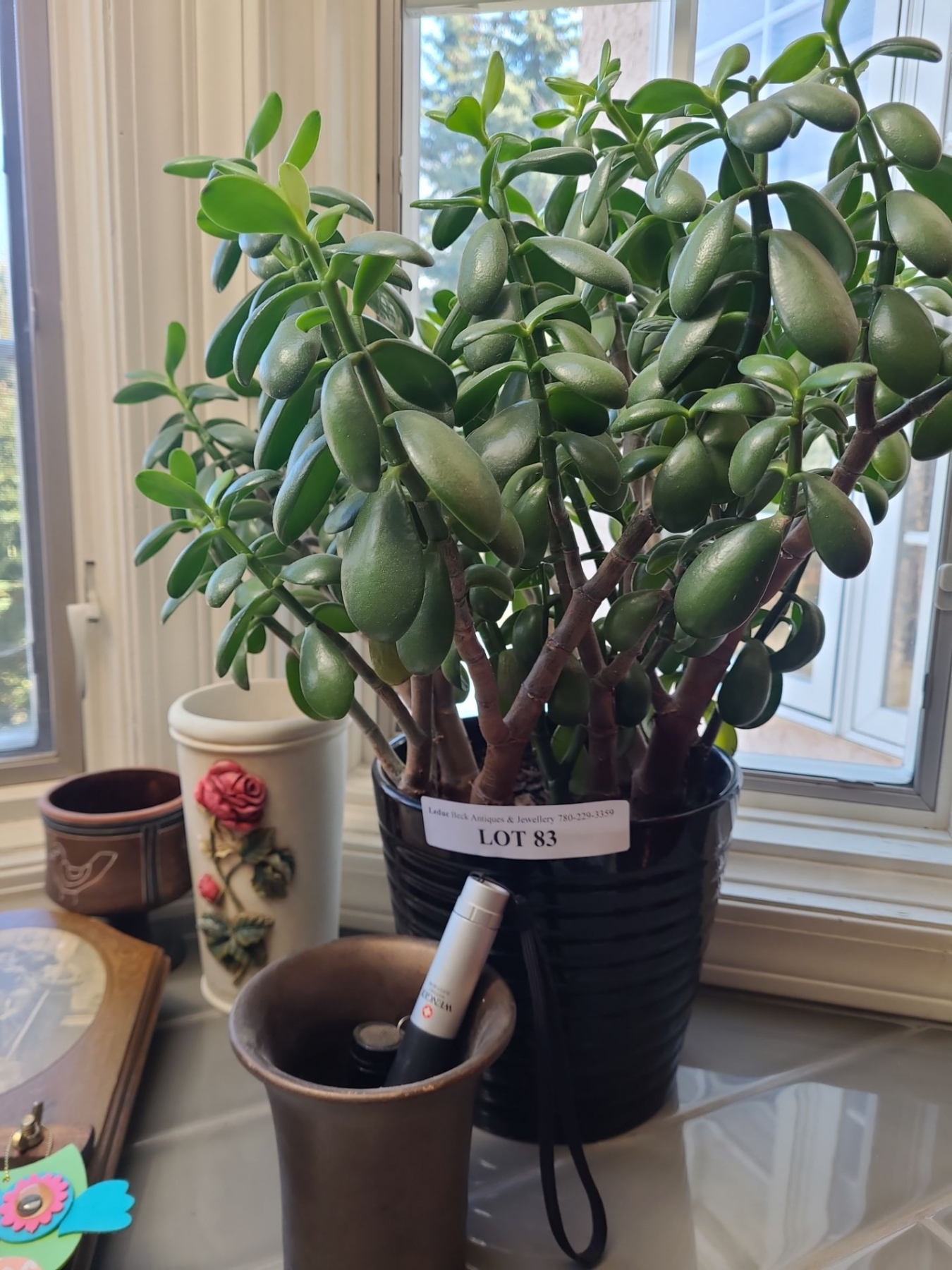 Lot 83 Christmas Cactus & Pair of Jade Plants & other Asst Decor