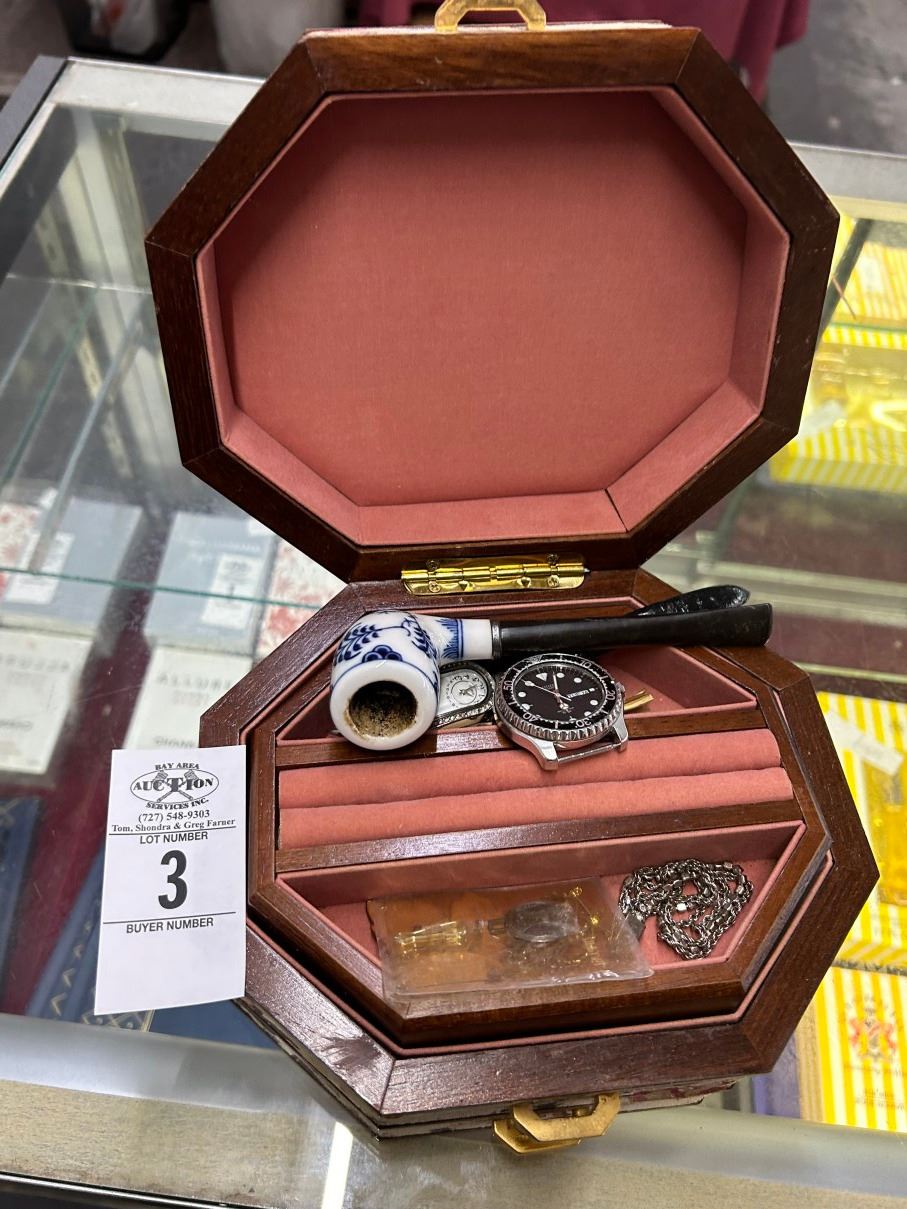 Jewelry Box w/Pipe, Some Jewelry