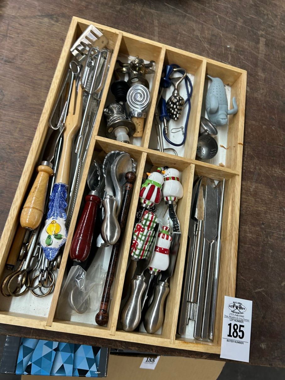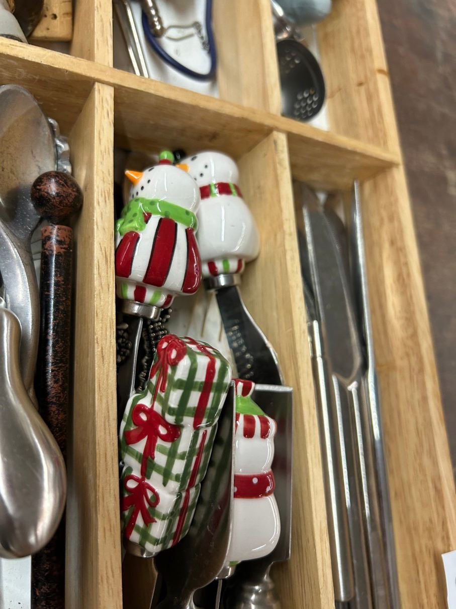 Lot 185 Wooden Utensil Bin w/Asst. Utensils w/Holiday