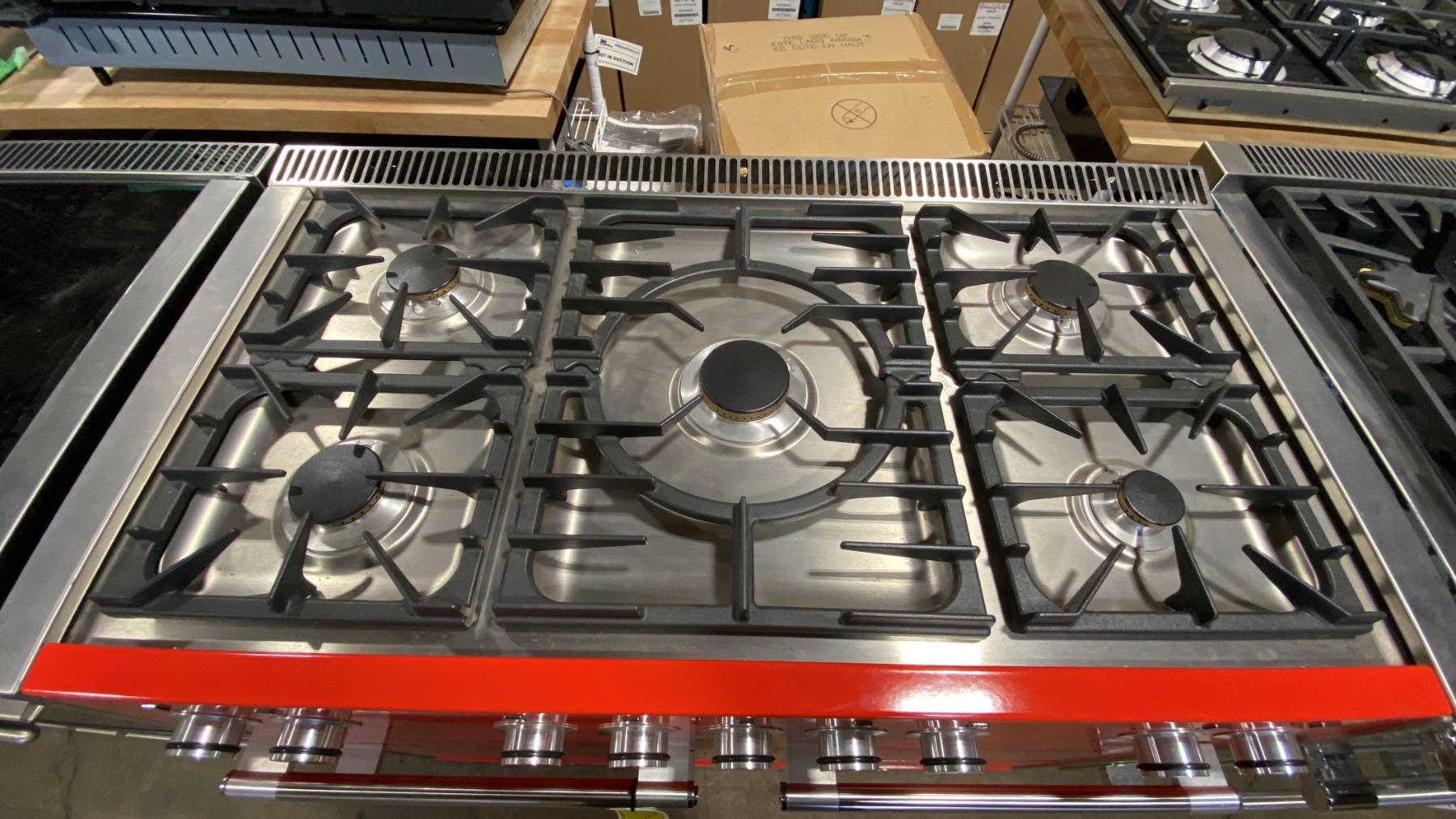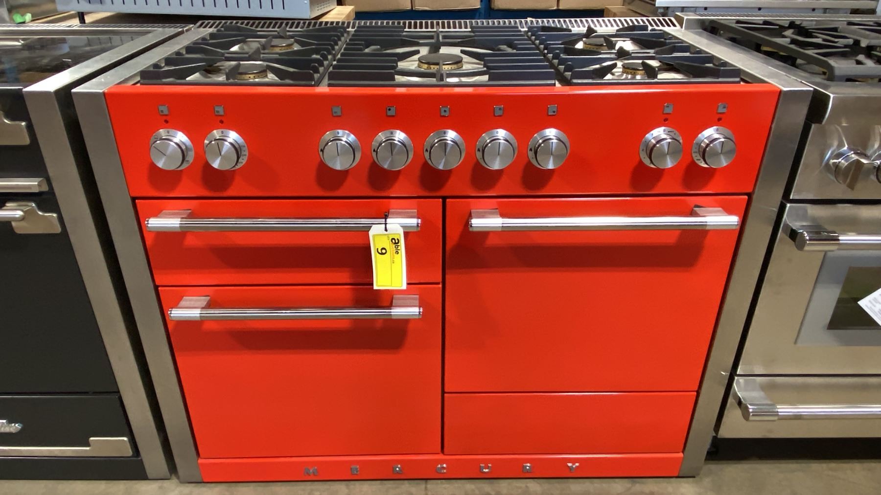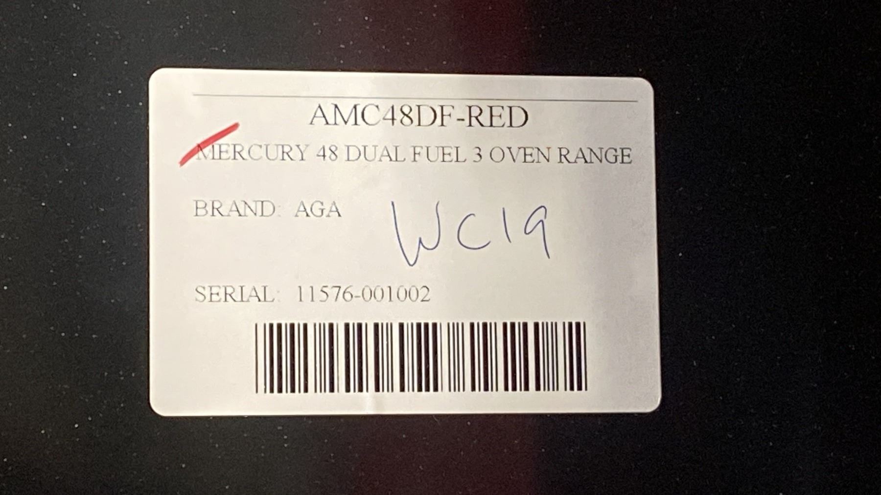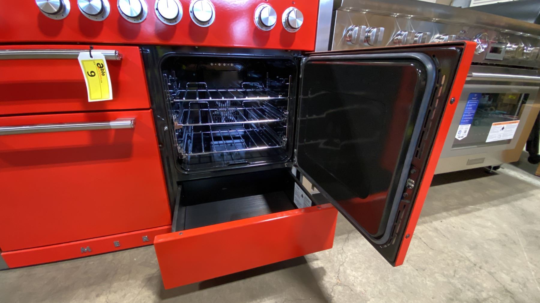 AGA MERCURY MODEL AMC48DF-RED. 48" DUAL-FUEL 5 BURNER RANGE IN PICCADILLY RED WITH 7 MODE MULTI FUNCTION OVEN, EUROPEAN CONVECTION OVEN & GLIDE OUT BROILER SN 11576-001002 RETAIL PRICE $12,499.99