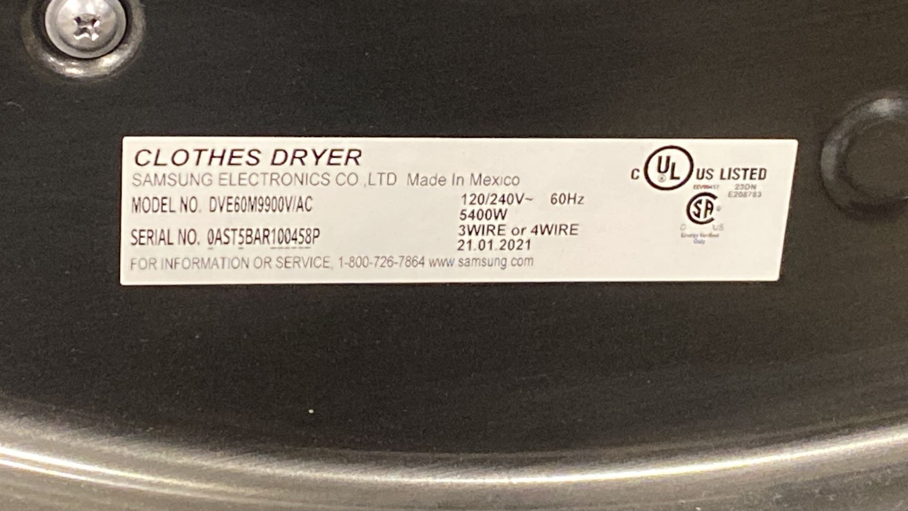 SAMSUNG MODEL DVE60M9900V/AC. 7.5 CU FT ELECTRIC DRYER WITH FLEX DRY AND WIFI TECHNOLOGY SN 0AST5BAR100458P RETAIL PRICE $2399.99