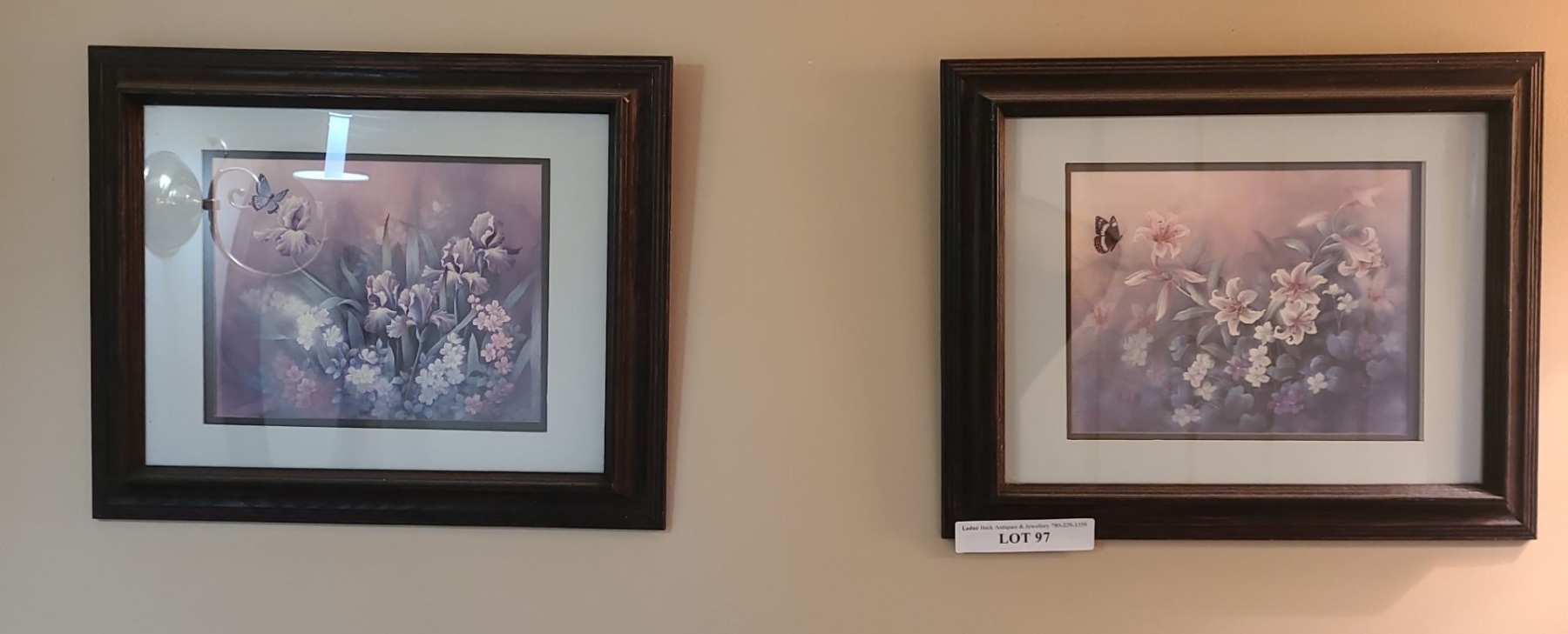 Lot 97 Floral Painting, Framed Prints 17 X 14, Display Shelf, Magazine Rack