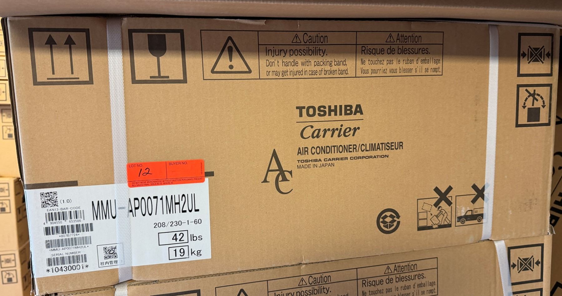 Lot 12 Carrier MMU-AP0071MH2UL Toshiba Compact 4-Way Cassette, 7.5/8.5 208/230-1-60 VRF System w/ RBC-AMS54