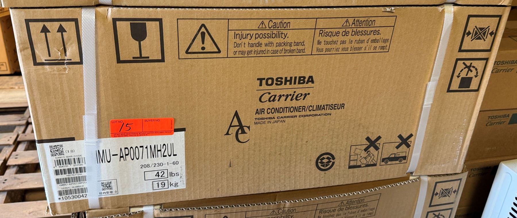 Lot 15 Carrier MMU-AP0071MH2UL Toshiba Compact 4-Way Cassette, 7.5/8.5 208/230-1-60 VRF System w/ RBC-AMS54
