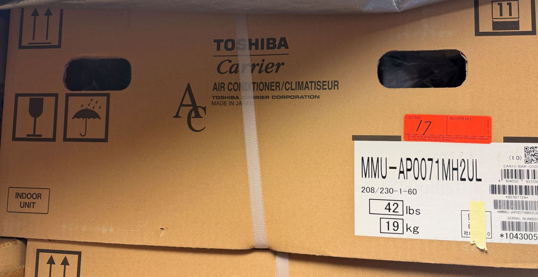 Lot 17 Carrier MMU-AP0071MH2UL Toshiba Compact 4-Way Cassette, 7.5/8.5 208/230-1-60 VRF System w/ RBC-AMS54
