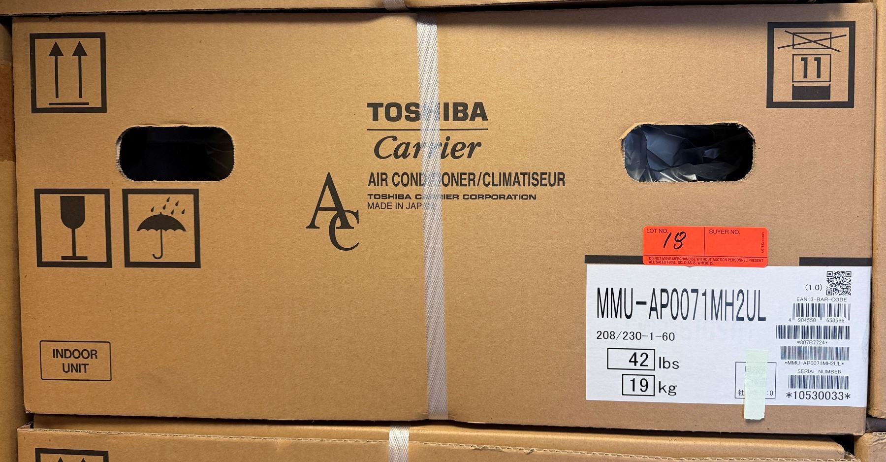 This is a stock photo representative of Unit. Carrier MMU-AP0071MH2UL Toshiba Compact 4-Way Cassette, 7.5/8.5 208/230-1-60 VRF System w/ RBC-AMS54E-UL Remote & RBC-UM11PG(W)-UL Grill (approx retail $1,000)