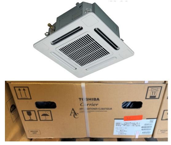 This is a stock photo representative of Unit. Carrier MMU-AP0071MH2UL Toshiba Compact 4-Way Cassette, 7.5/8.5 208/230-1-60 VRF System w/ RBC-AMS54E-UL Remote & RBC-UM11PG(W)-UL Grill (approx retail $1,000)
