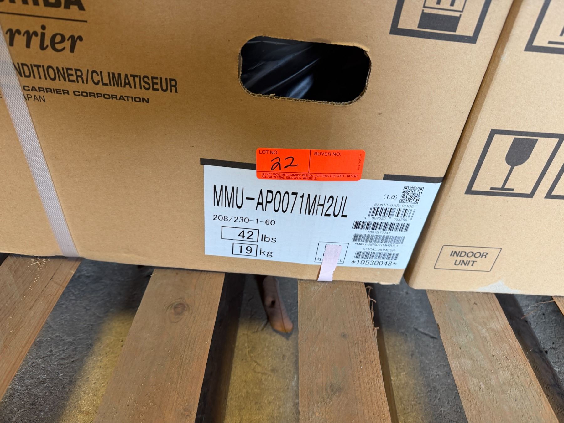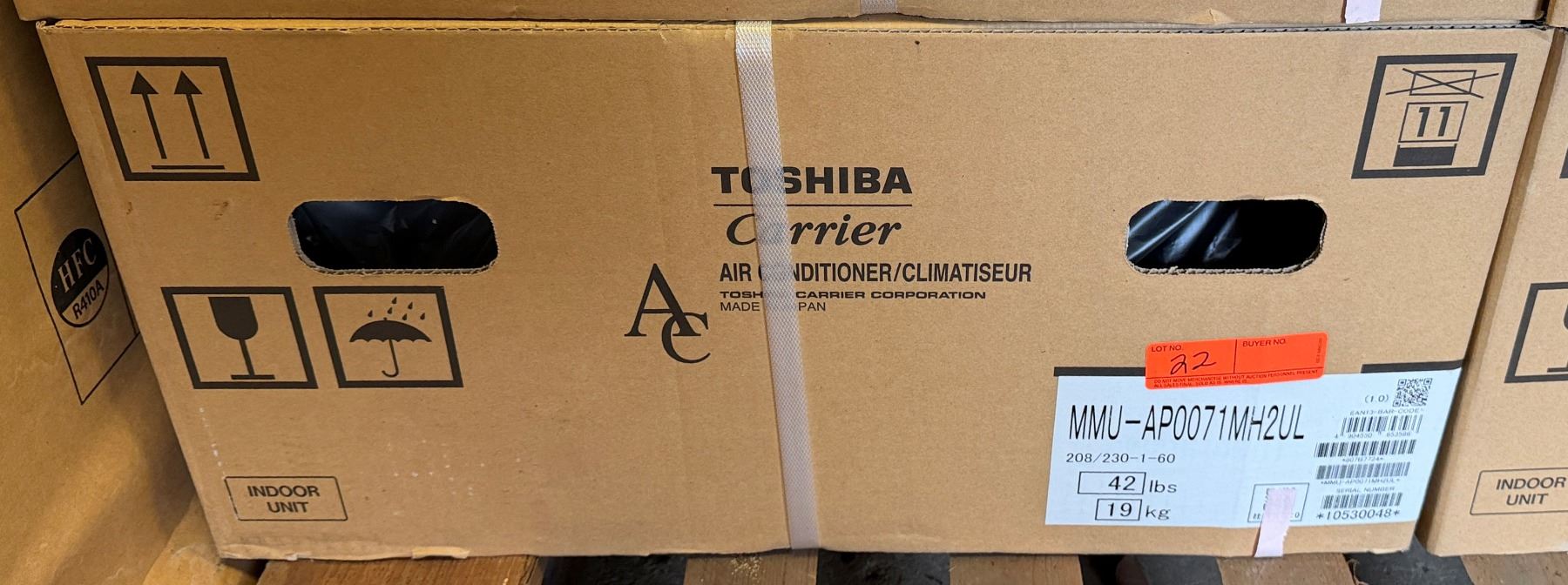 Lot 22 Carrier MMU-AP0071MH2UL Toshiba Compact 4-Way Cassette, 7.5/8.5 208/230-1-60 VRF System w/ RBC-AMS54