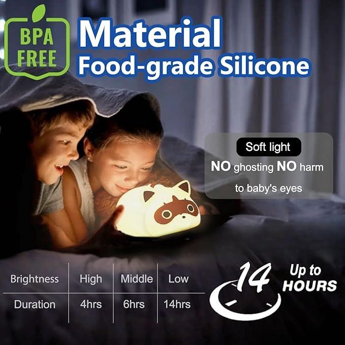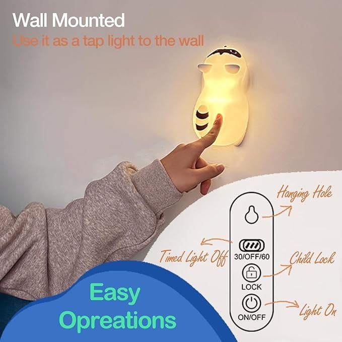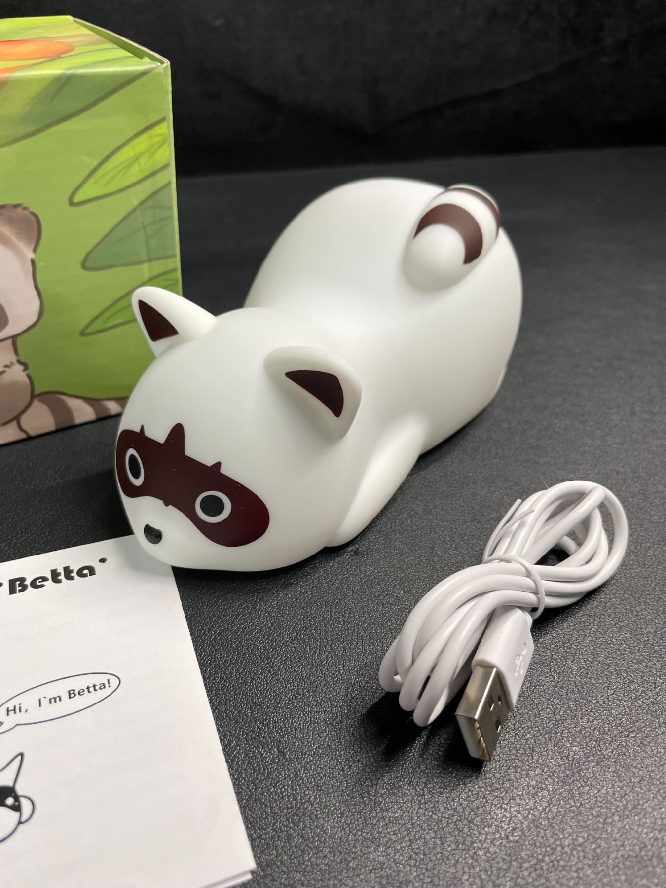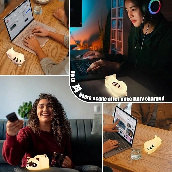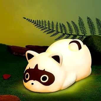 - Night Light Raccoon Cute LED Lamp /Bedside Lamp; Bedroom Dimmable Rechargeable Touch Control Table Desk Lamp; Cool Stuff Fun Kawaii Room Decor Aesthetic Novelty Decor