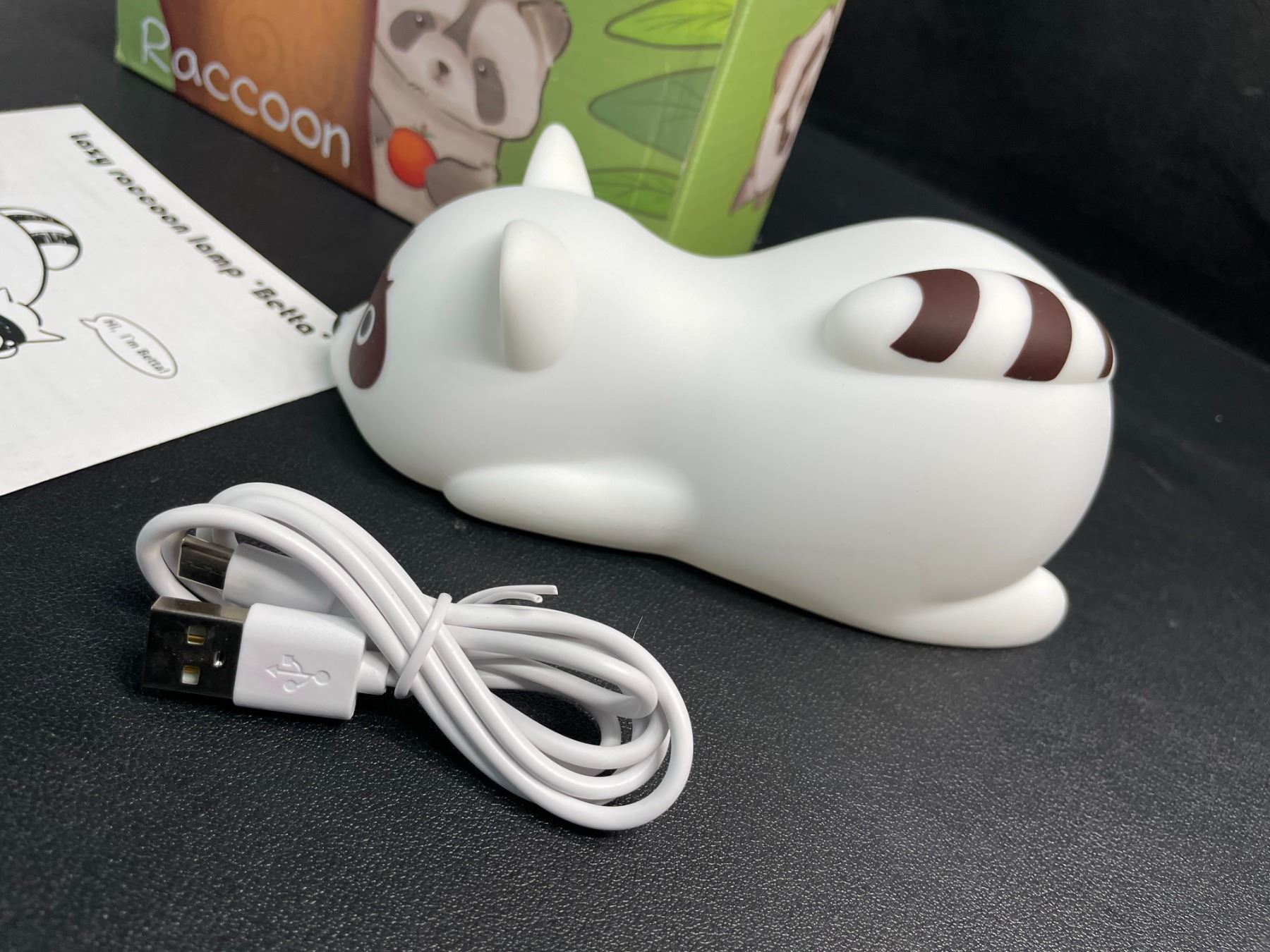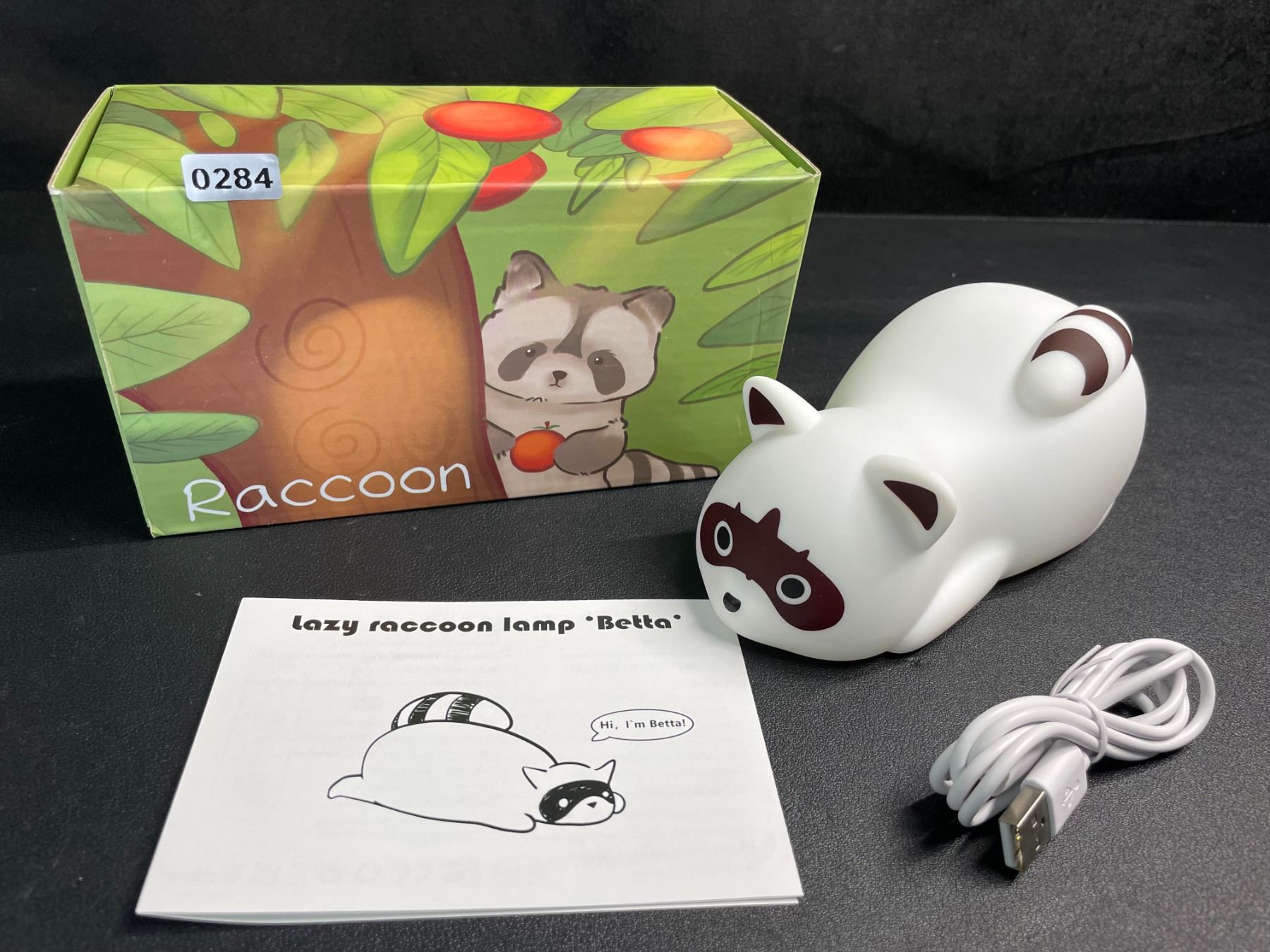 Lot 284 LED Cute Lazy Raccoon Bedside Lamp; Touch Control, Dimmable & Rechargeable - New