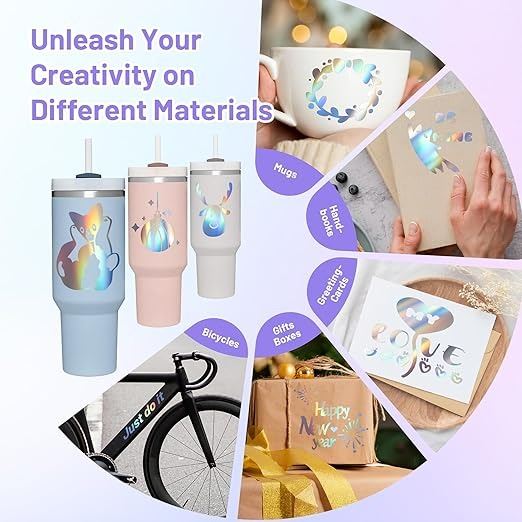 - Holographic Permanent Vinyl for Cricut, 12" x 6FT Silver Waterproofed Iridescent Adhesive Vinyl Roll for All Cutting Machine, Christmas Decorations, Home Outdoor DIY Decor, Decals, Stickers