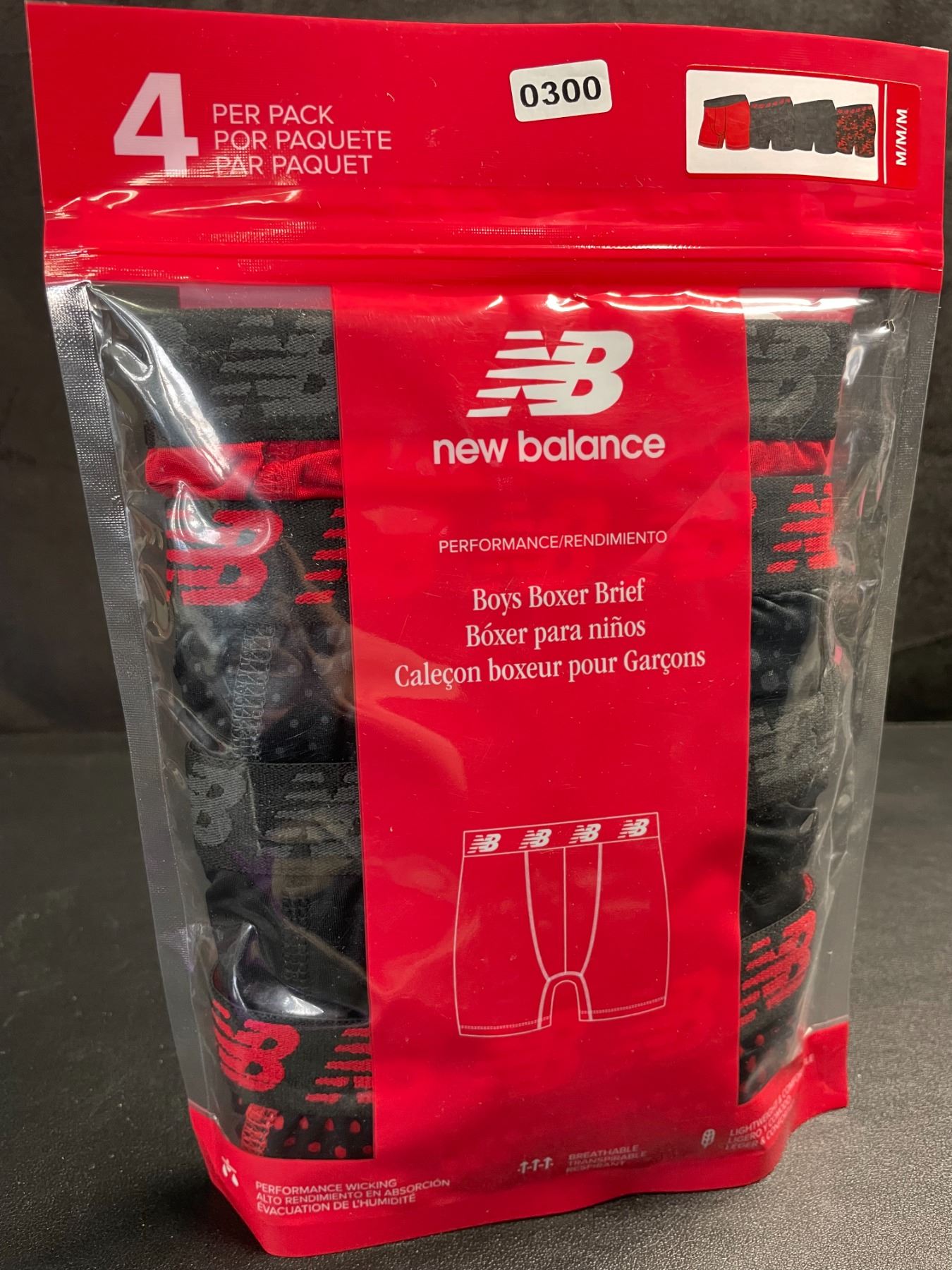 Lot 300 4-Pack of New Balance Performance Boys Boxer Briefs (Size M) Lightweight/Breathable - New