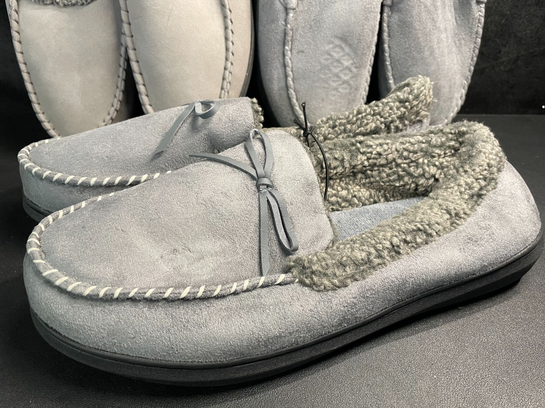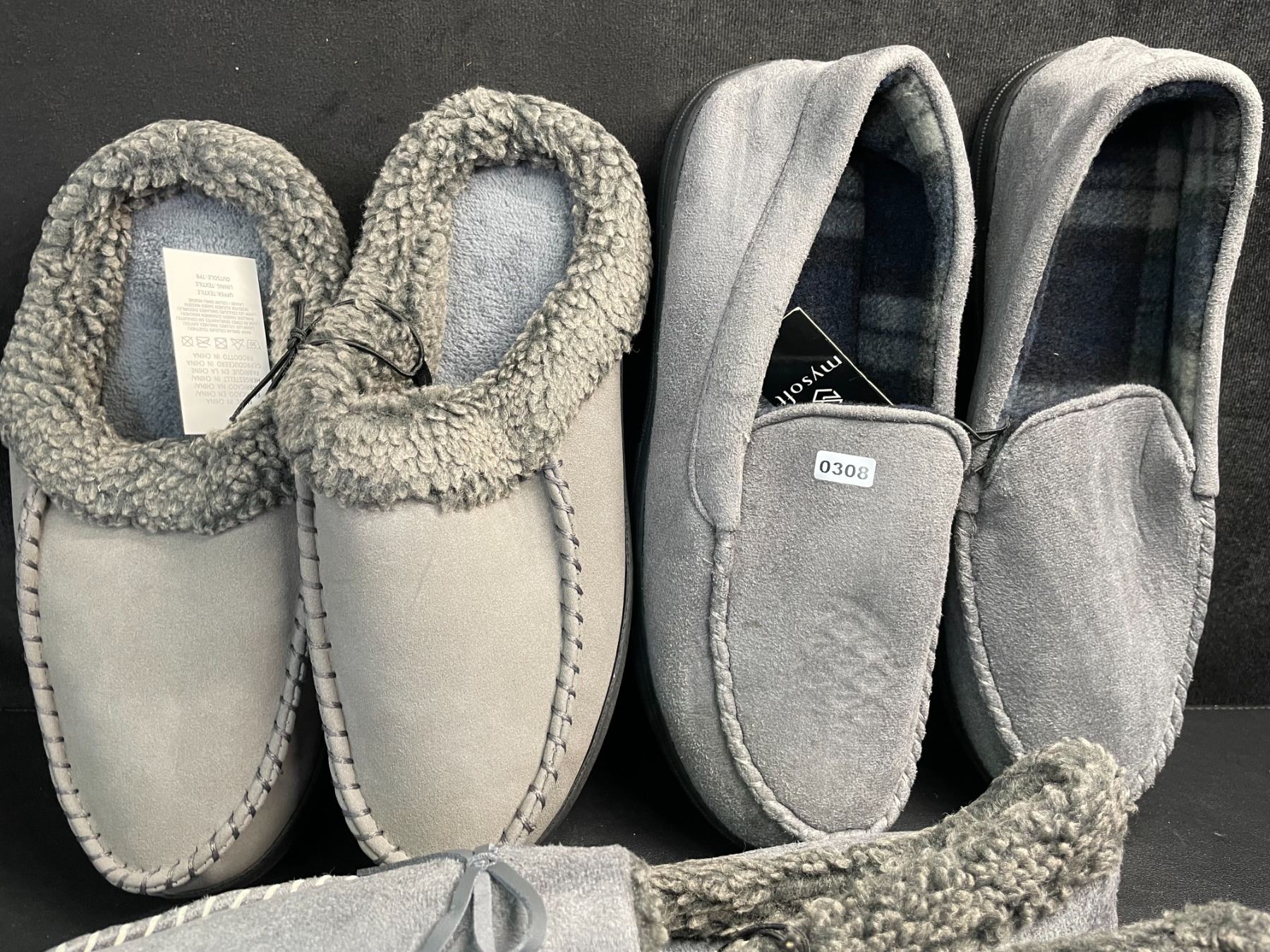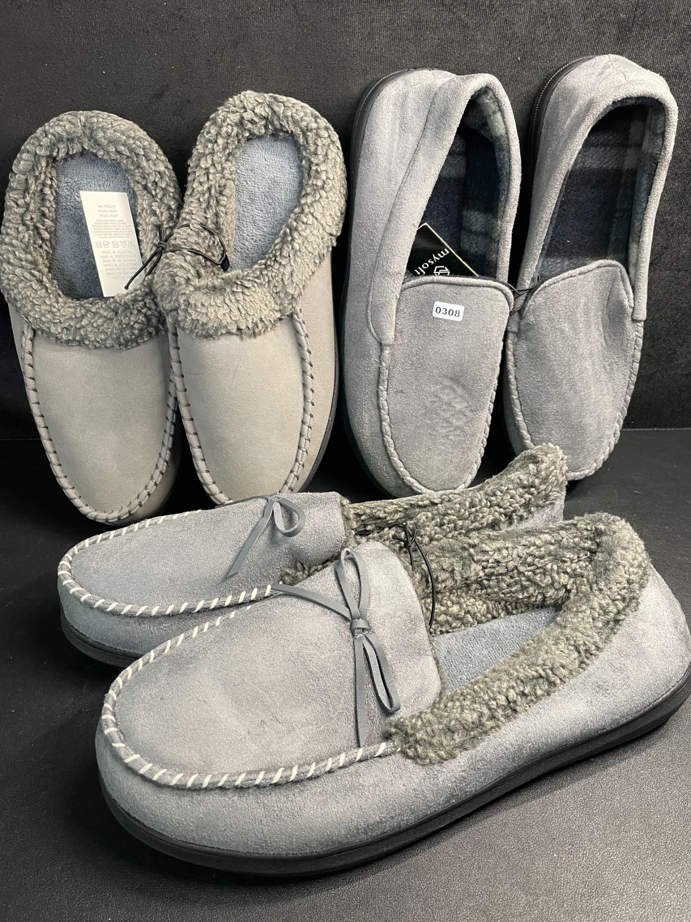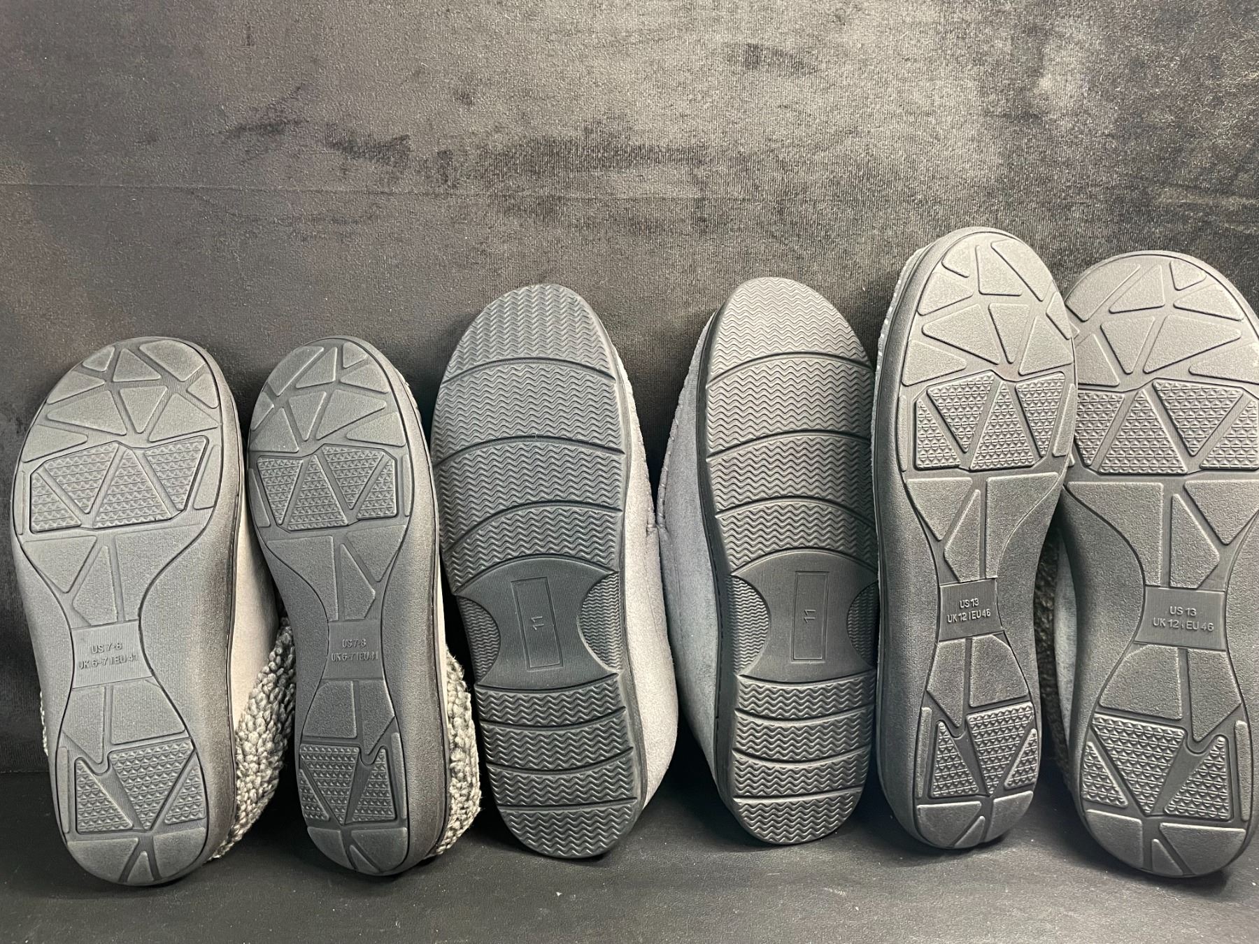 Lot 308 3 Pairs of Assorted Grey Men's Slippers with Non-Slip Grip Bottom (Assorted Sizes - See Photos) New