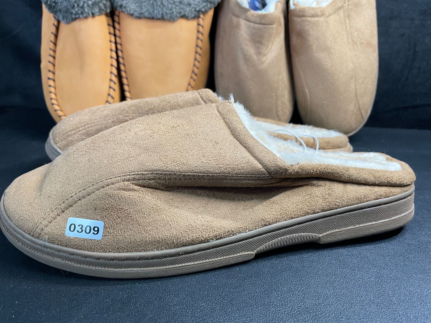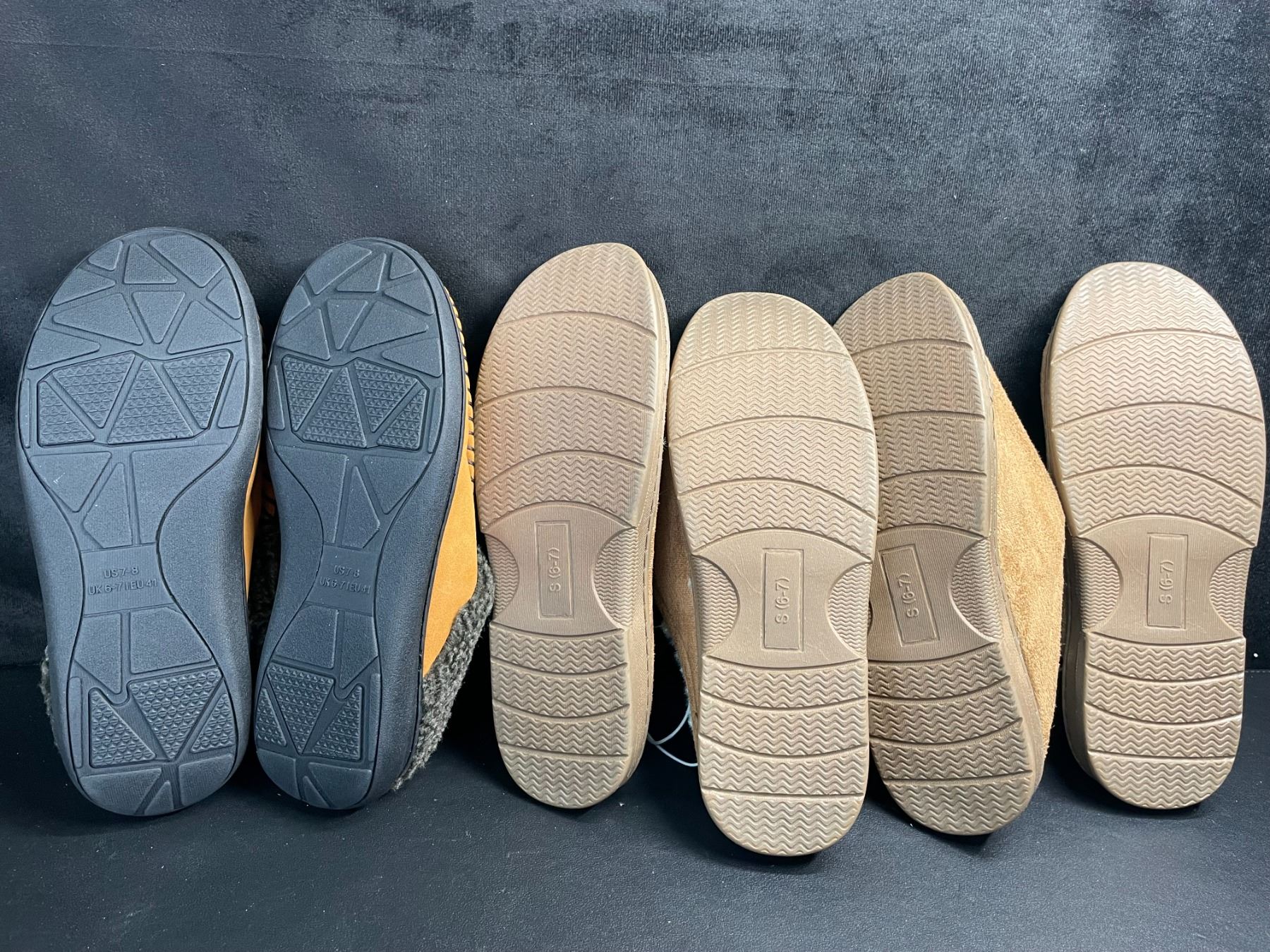 Lot 309 3 Pairs of Assorted Tan Slippers with Non-Slip Grip Bottom (Assorted Sizes - See Photos) New