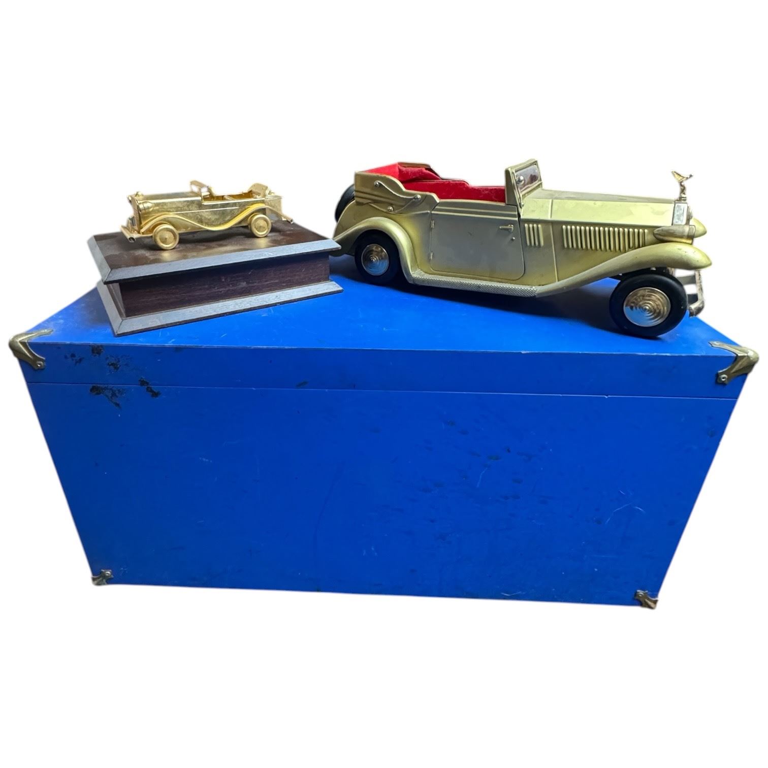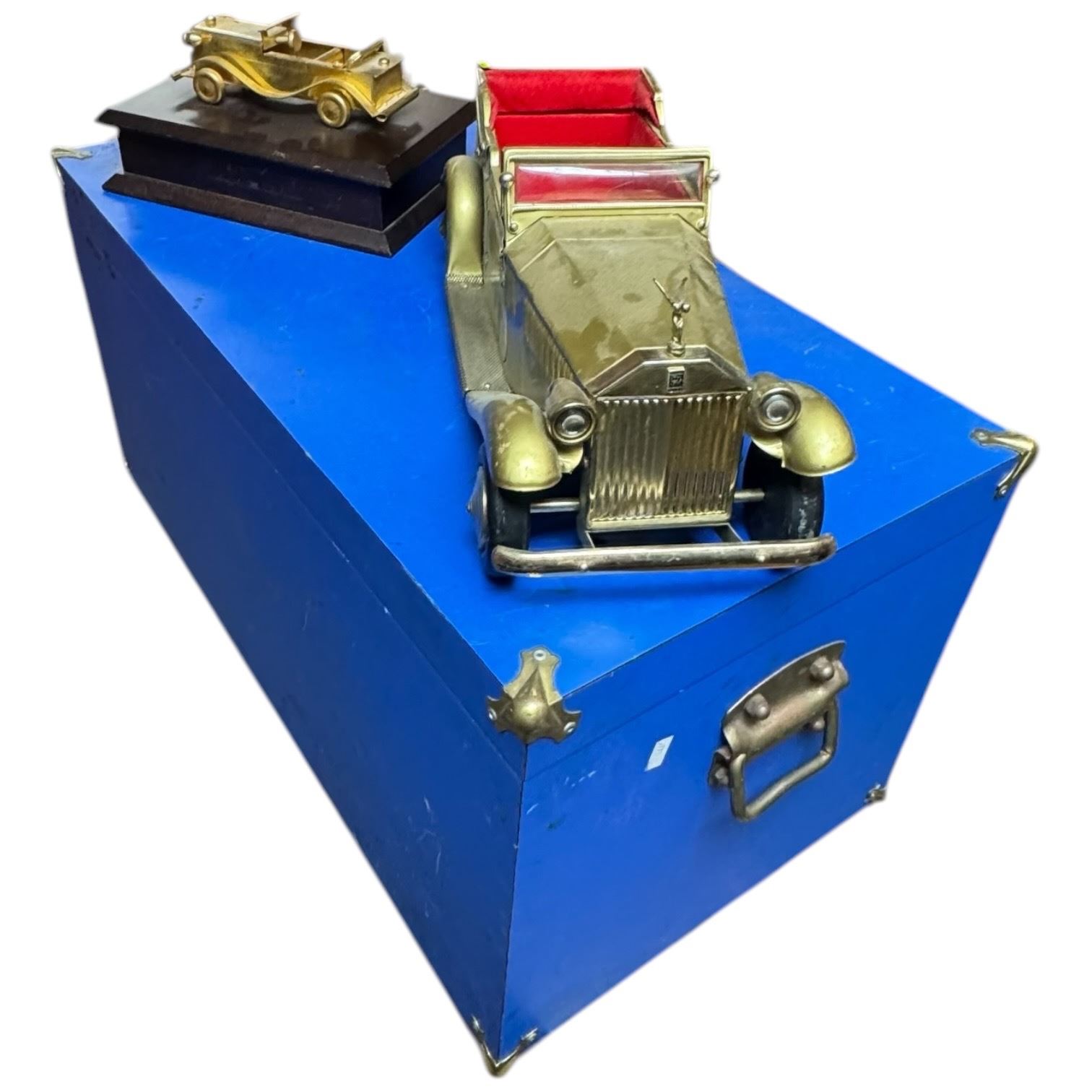 Lot 1408 Blue Toy Box and Brass Cars 26x13.5x13"