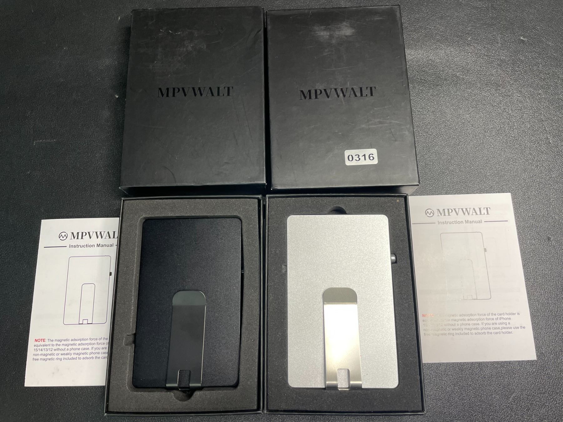 Lot 316 Lot of 2 Minimalist Pop-Up Wallets/Magnetic Wallet Card Holders for Magsafe Devices (Silver/Black)