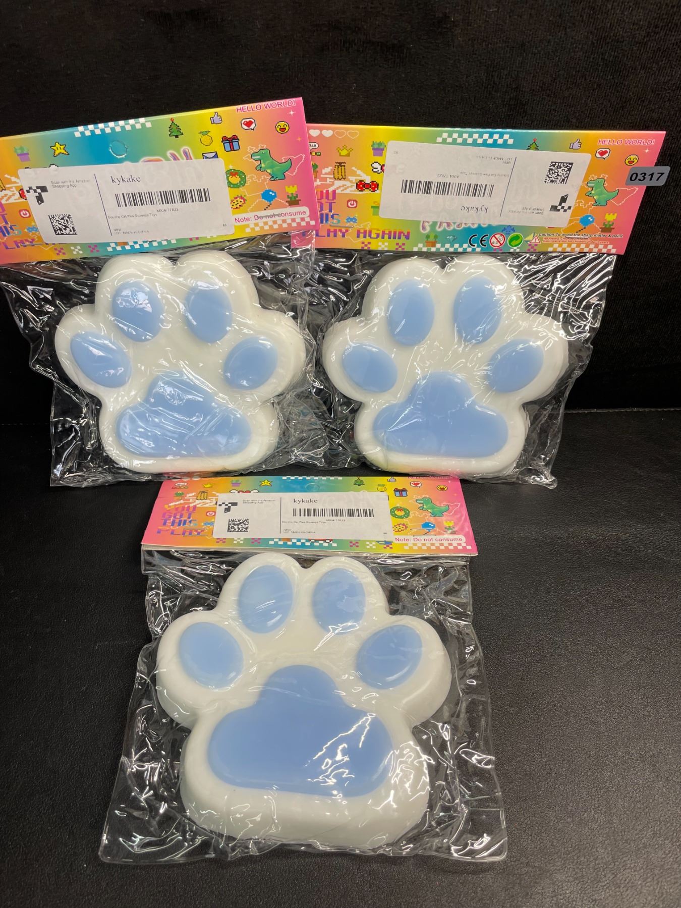 Lot 317 Lot of 3 Large Squishy Cat Paw Squeeze Toys/Sensory Toys - Brand New