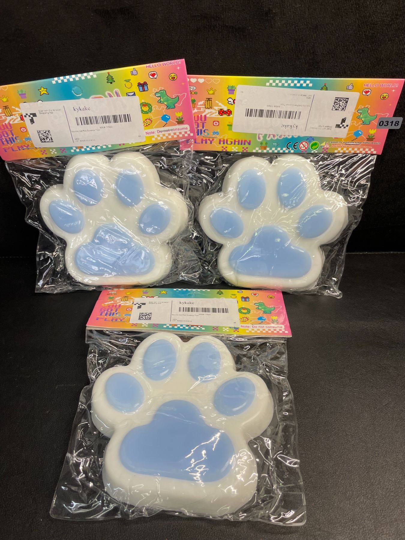 Lot 318 Lot of 3 Large Squishy Cat Paw Squeeze Toys/Sensory Toys - Brand New